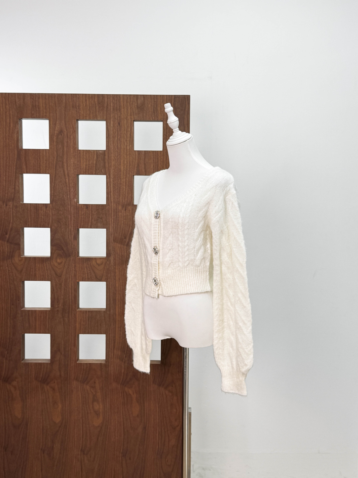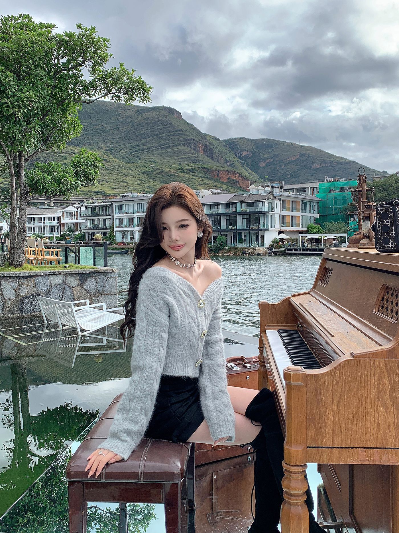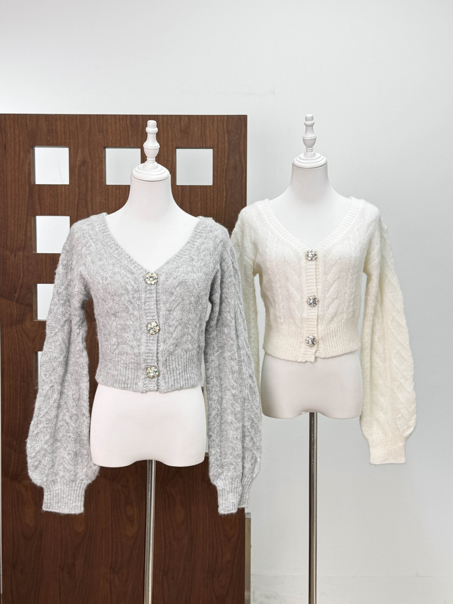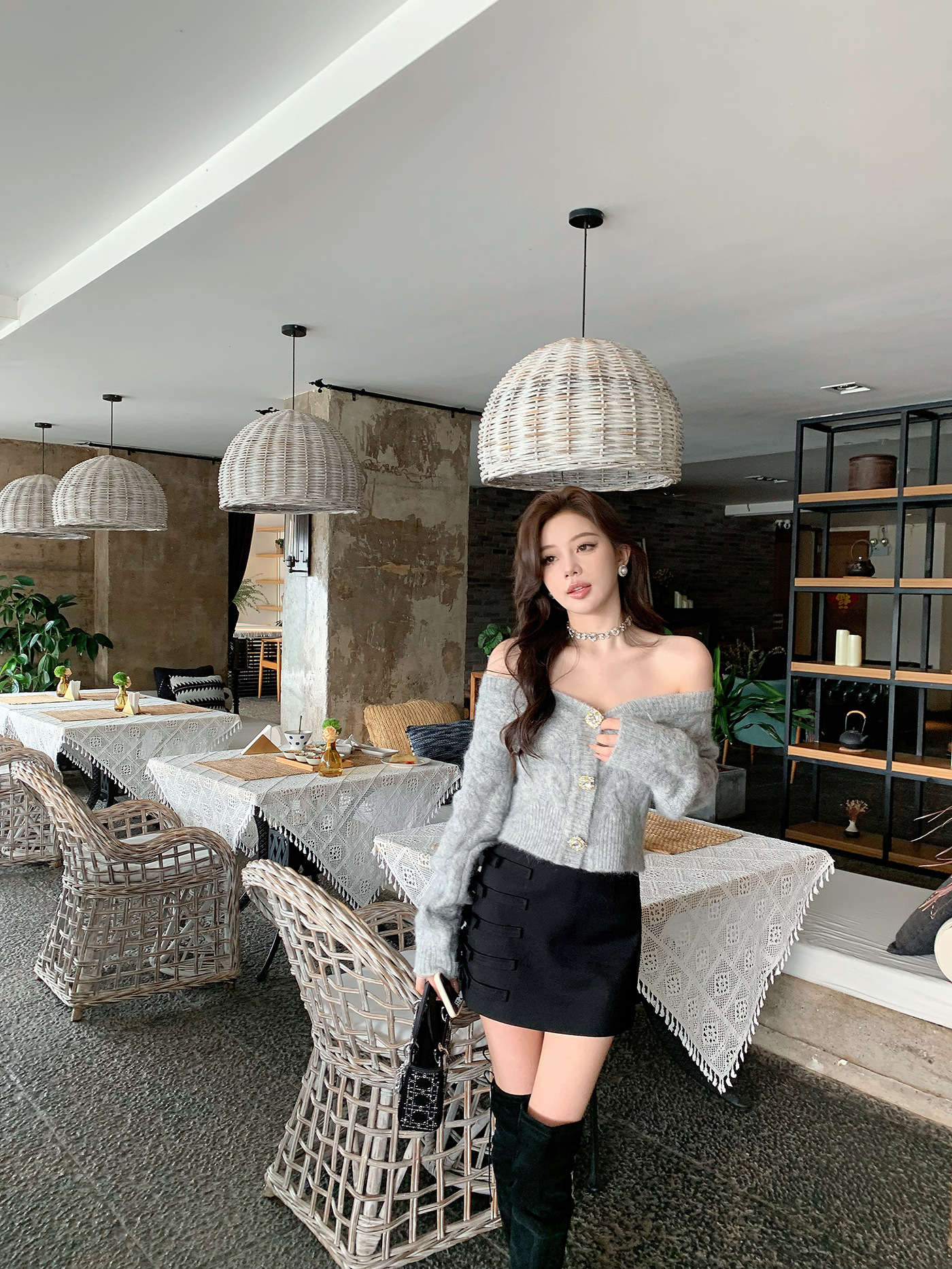 디자인감 있는 가을 겨울 신상품, 부드러운 스타일의 모헤어 원숄더 스웨터 가디건, 부드럽고 촉감 좋은 짧은 루즈핏 상의스토어 가기