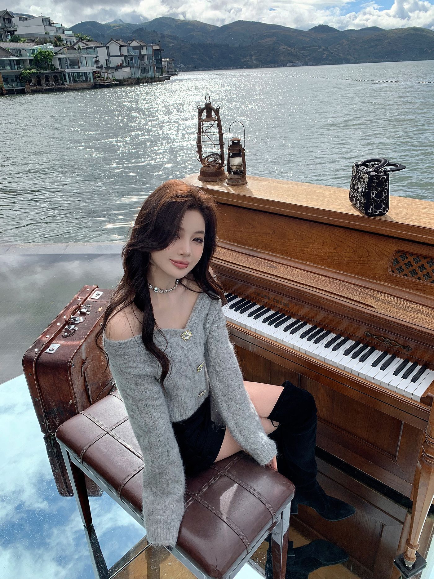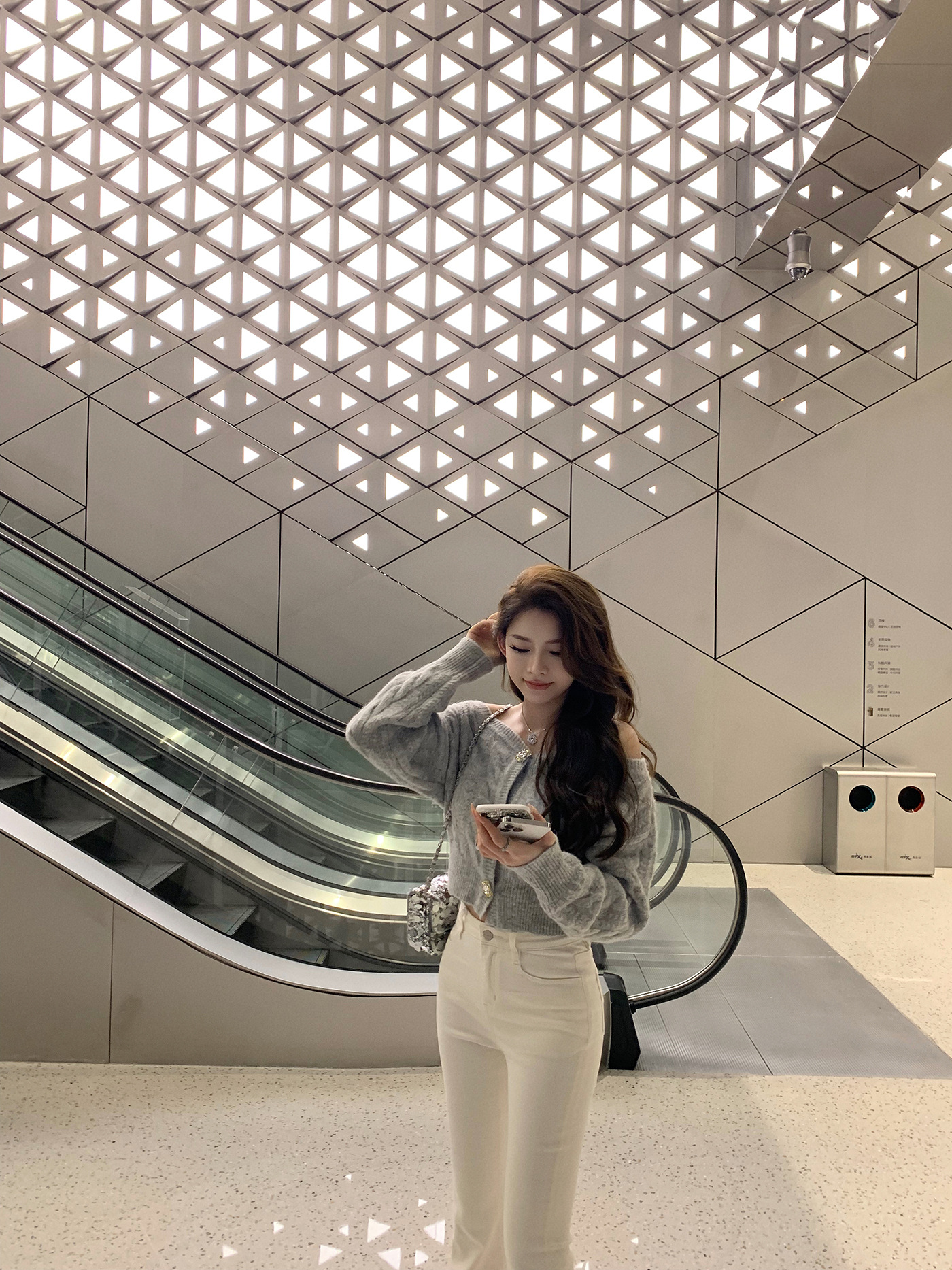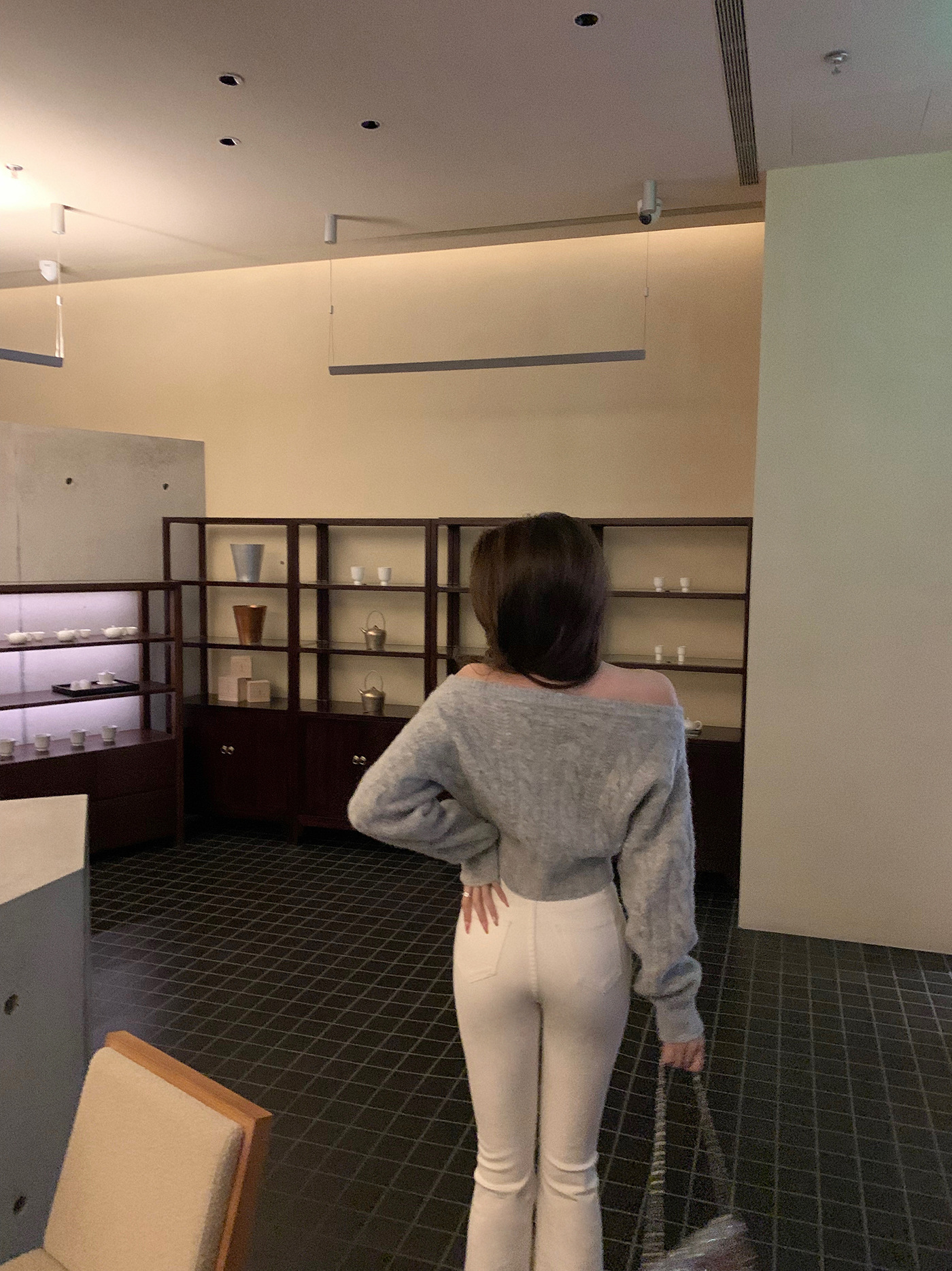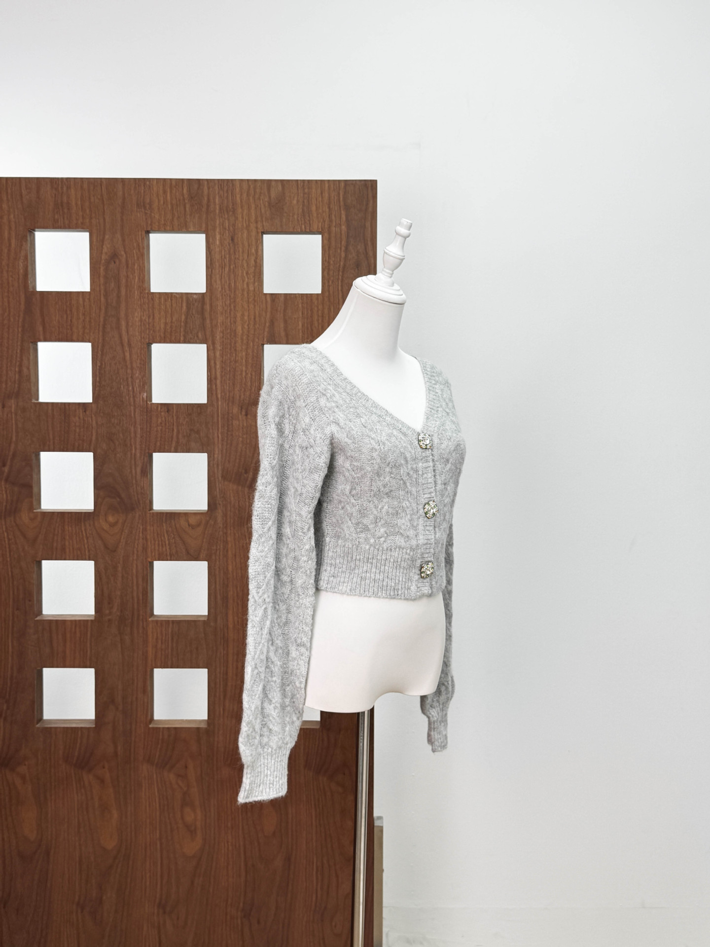 디자인감 있는 가을 겨울 신상품, 부드러운 스타일의 모헤어 원숄더 스웨터 가디건, 부드럽고 촉감 좋은 짧은 루즈핏 상의스토어 가기