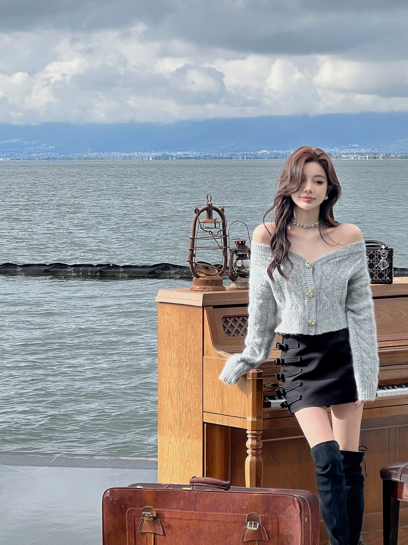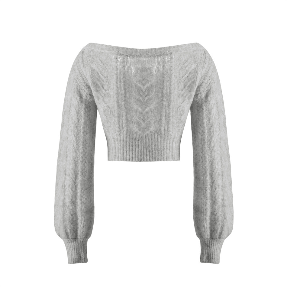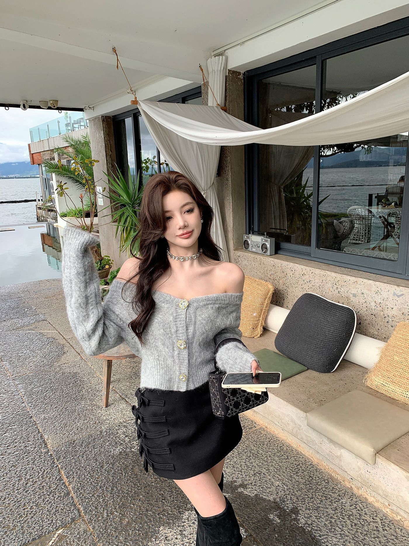 디자인감 있는 가을 겨울 신상품, 부드러운 스타일의 모헤어 원숄더 스웨터 가디건, 부드럽고 촉감 좋은 짧은 루즈핏 상의