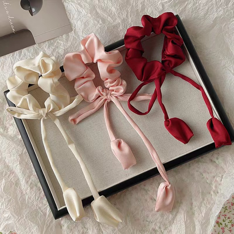 활 새틴 튤립 리본 대장 헤어 링 고급 감각 빛 럭셔리 장미 헤어 링 간단한 우아한 고무 밴드스토어 가기