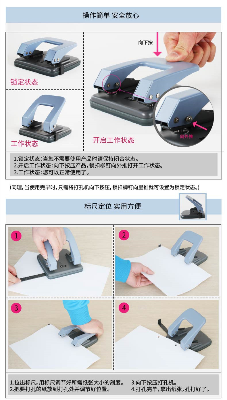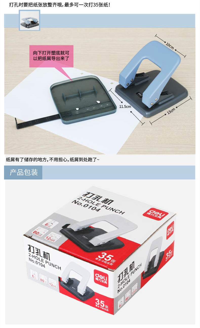 델리 0104 펀치 투홀 펀치 노동 절약 수동 셀프 테이프 자 A4 사무 문서 펀치 도매
