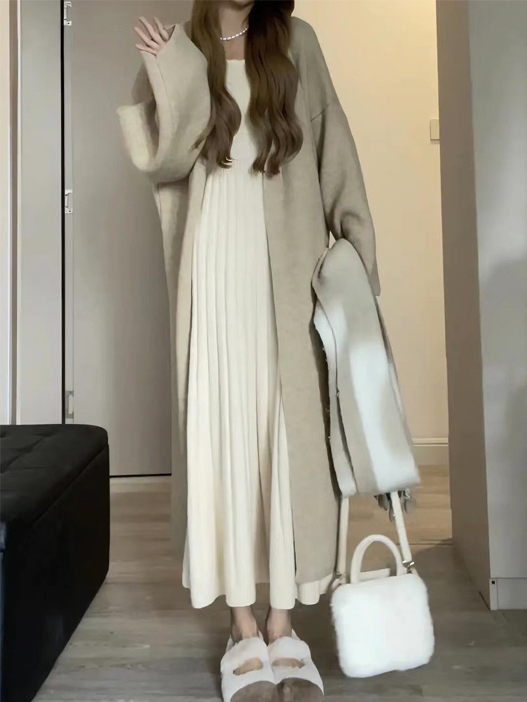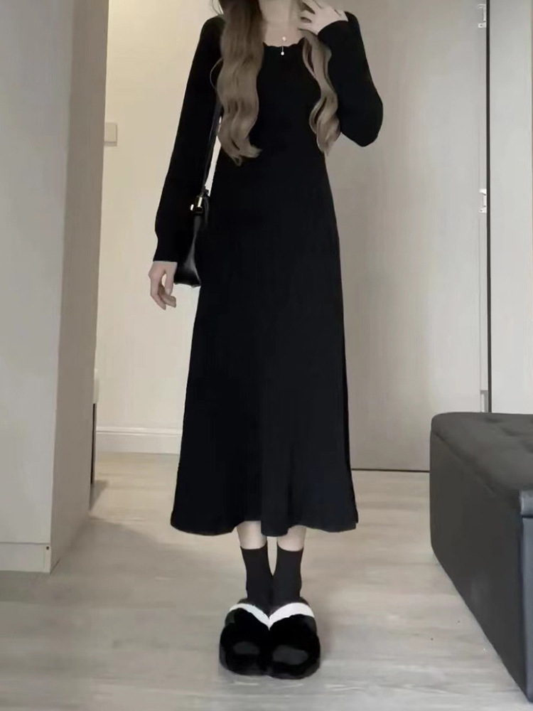 여성의 가을과 겨울 2023 새로운 내부 베이스 긴 소매 니트 롱 스커트 고급 감각을 원피스 이른 가을 스웨터스토어 가기