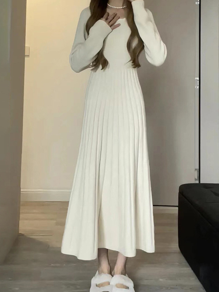 여성의 가을과 겨울 2023 새로운 내부 베이스 긴 소매 니트 롱 스커트 고급 감각을 원피스 이른 가을 스웨터