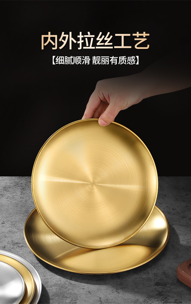한국어 바베큐 접시 스테인레스 스틸 두꺼운 디스크 황금 서양 음식 접시 과일 접시 바베큐 디핑 트레이 뼈 접시 도매