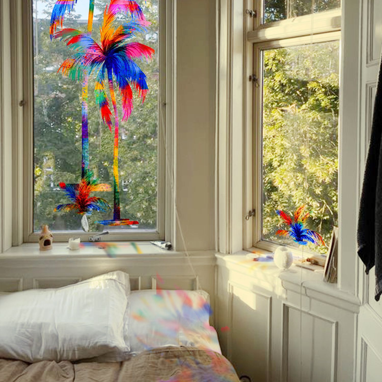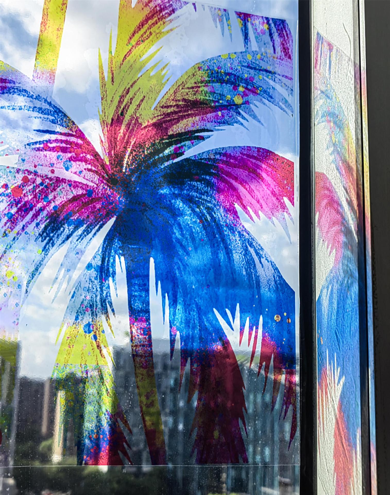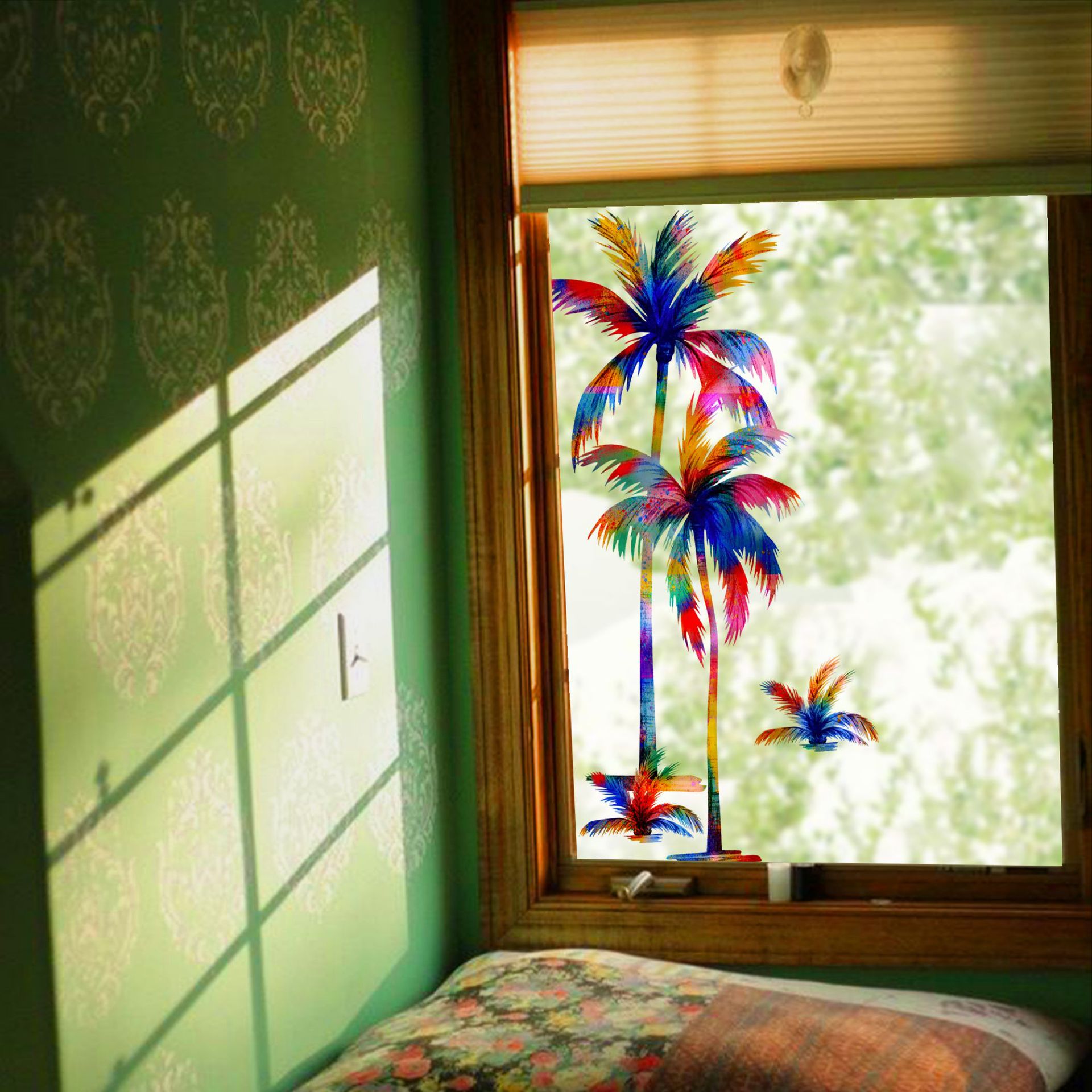 Funlife 꽃 바다 빛과 그림자 접착제 무료 정전기 유리 스티커 다채로운 투명 슬라이딩 도어 장식 방수 스티커 SE250