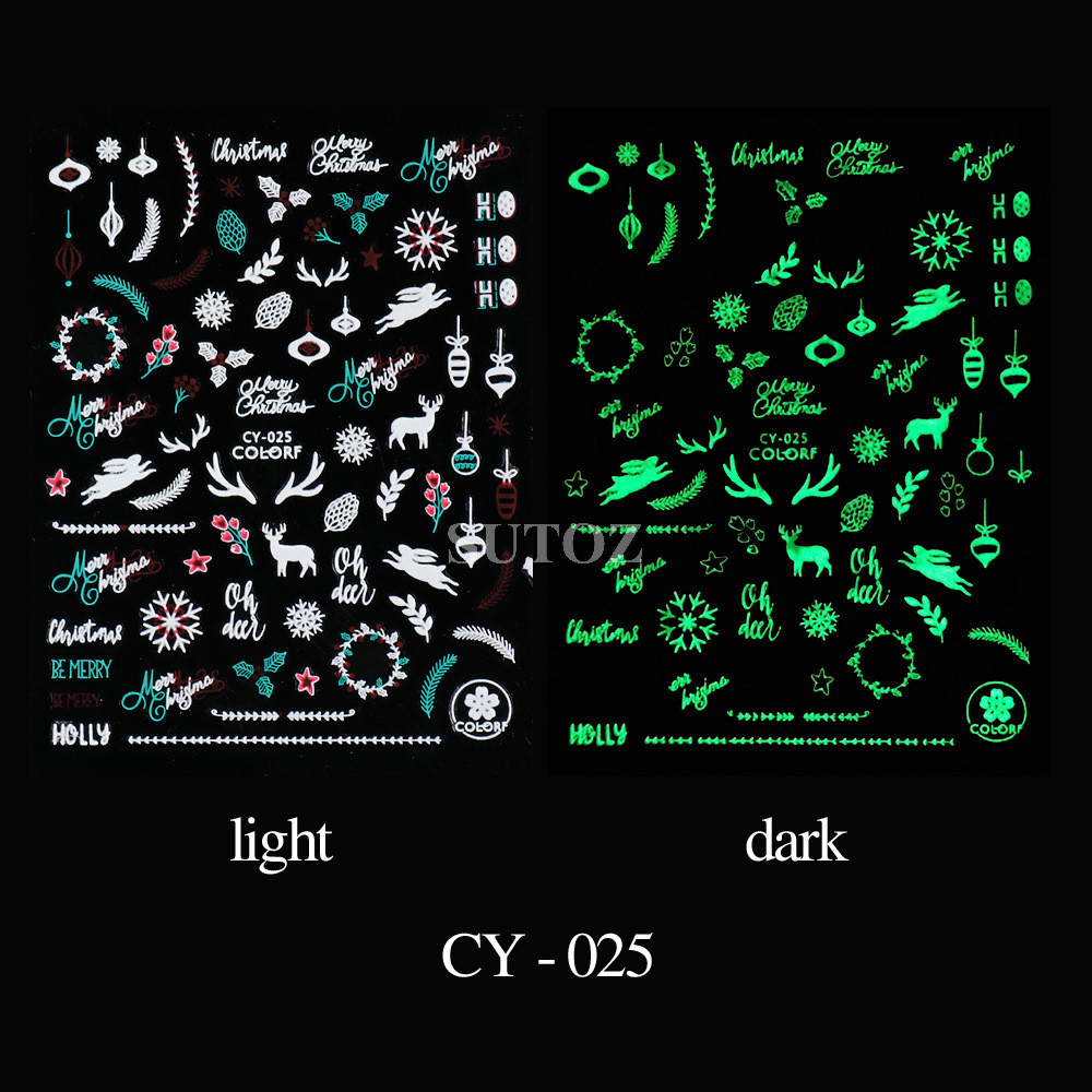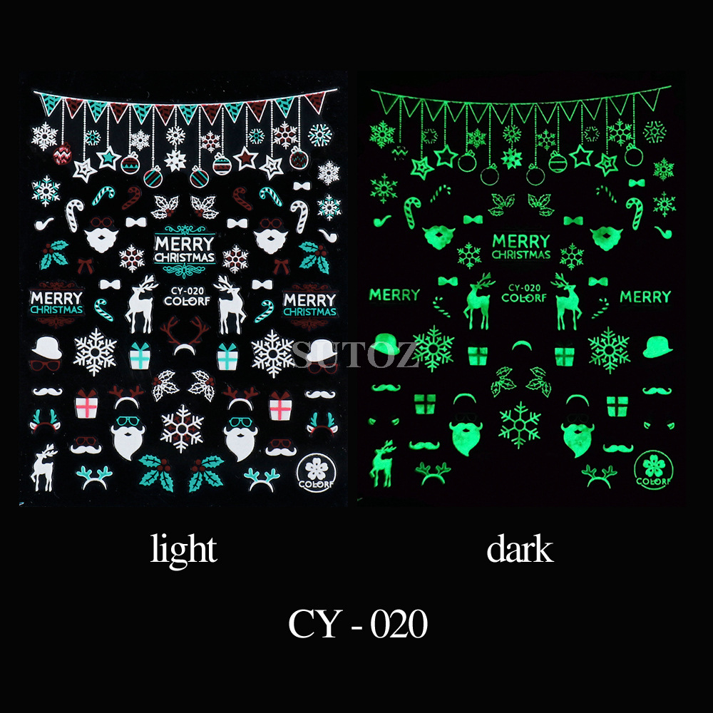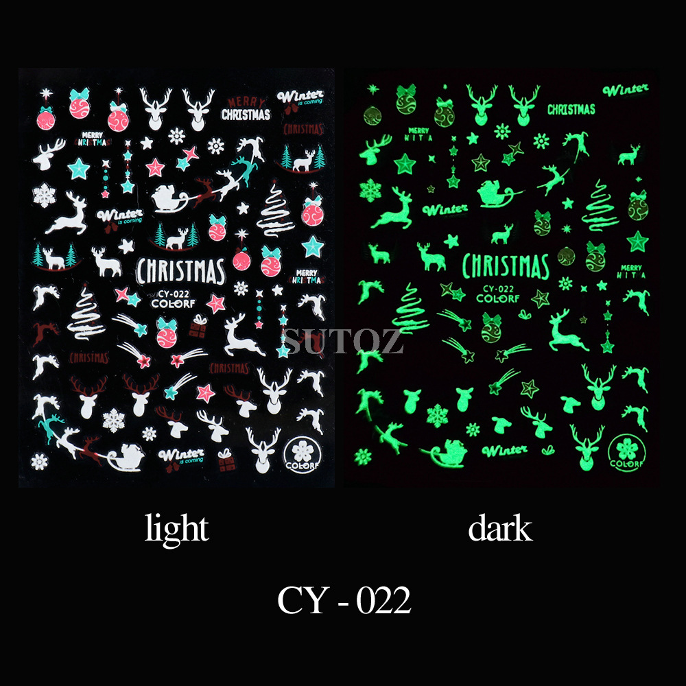 2023 새로운 크리스마스 빛나는 네일 아트 스티커 겨울 크리스마스 빛나는 눈송이 엘크 네일 다시 접착 스티커스토어 가기