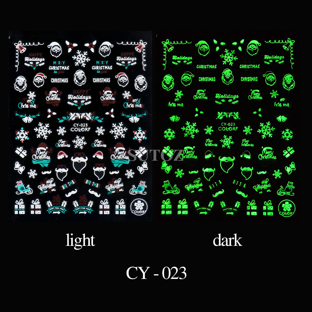 2023 새로운 크리스마스 빛나는 네일 아트 스티커 겨울 크리스마스 빛나는 눈송이 엘크 네일 다시 접착 스티커
