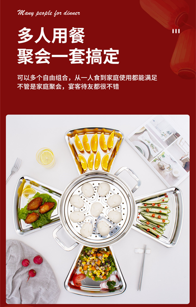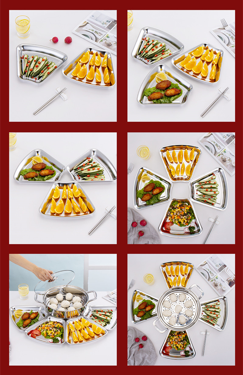304 스테인레스 스틸 동창회 플래터 한국식 두꺼운 조합 크리에이티브 디너 플레이트 팬 모양 식기 냄비 접시 세트 접시스토어 가기