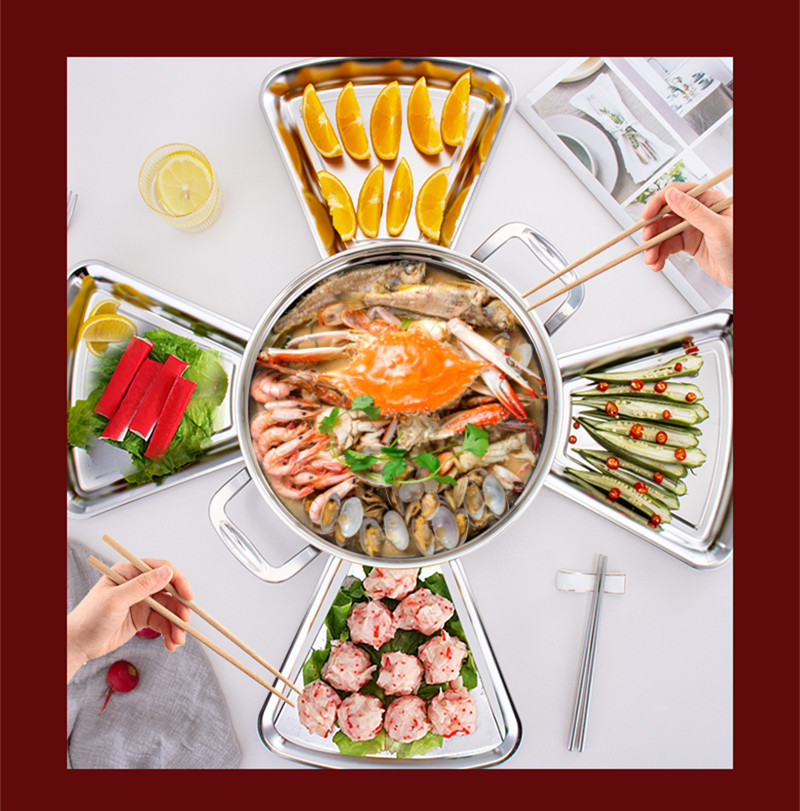 304 스테인레스 스틸 동창회 플래터 한국식 두꺼운 조합 크리에이티브 디너 플레이트 팬 모양 식기 냄비 접시 세트 접시