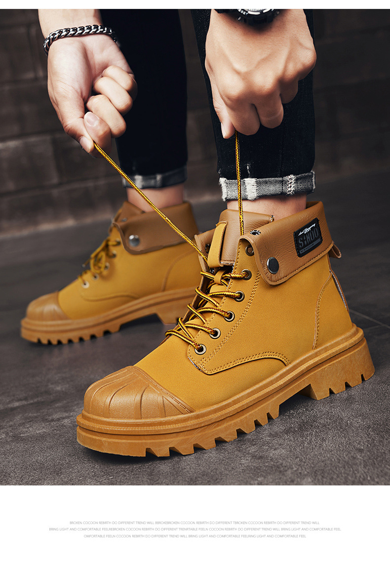 2023 가을과 겨울 하이탑 가죽 트렌디 신발 보드 신발 두꺼운 밑창 마틴 부츠 남성 작업복 부츠 레트로 다리 오토바이 부츠 남성 신발스토어 가기