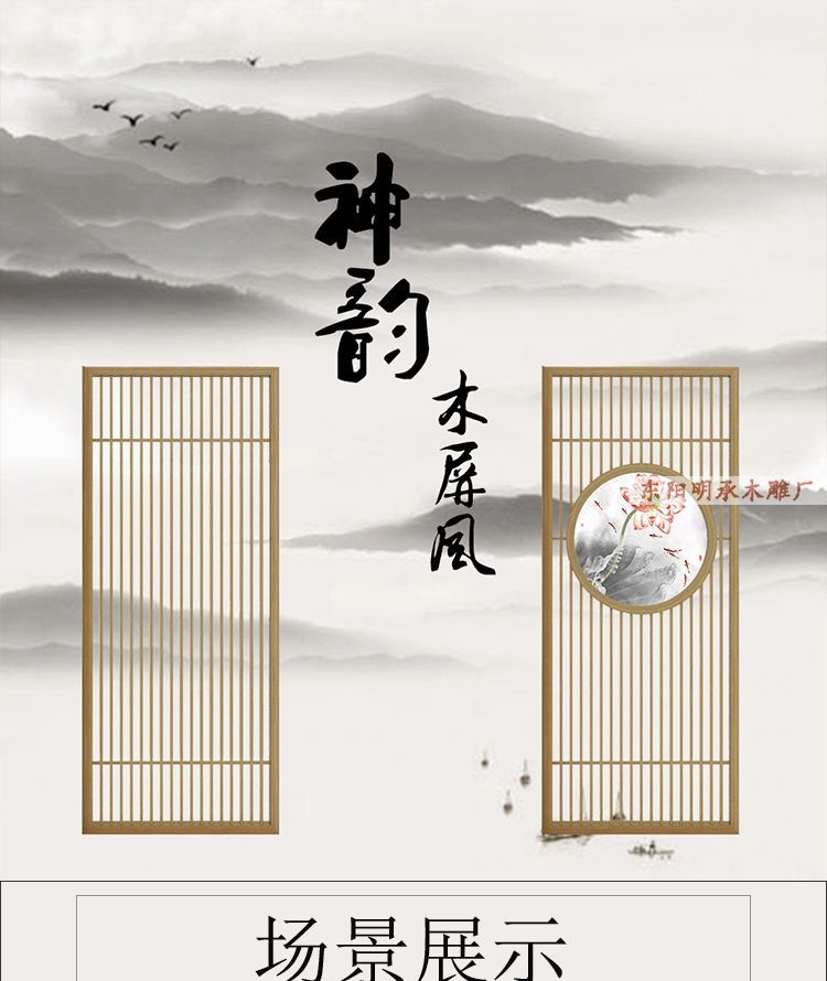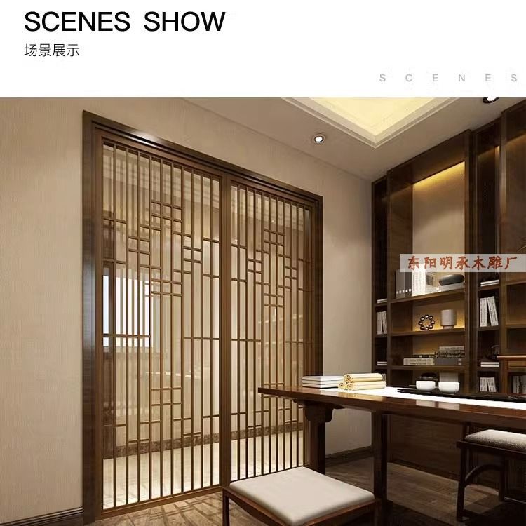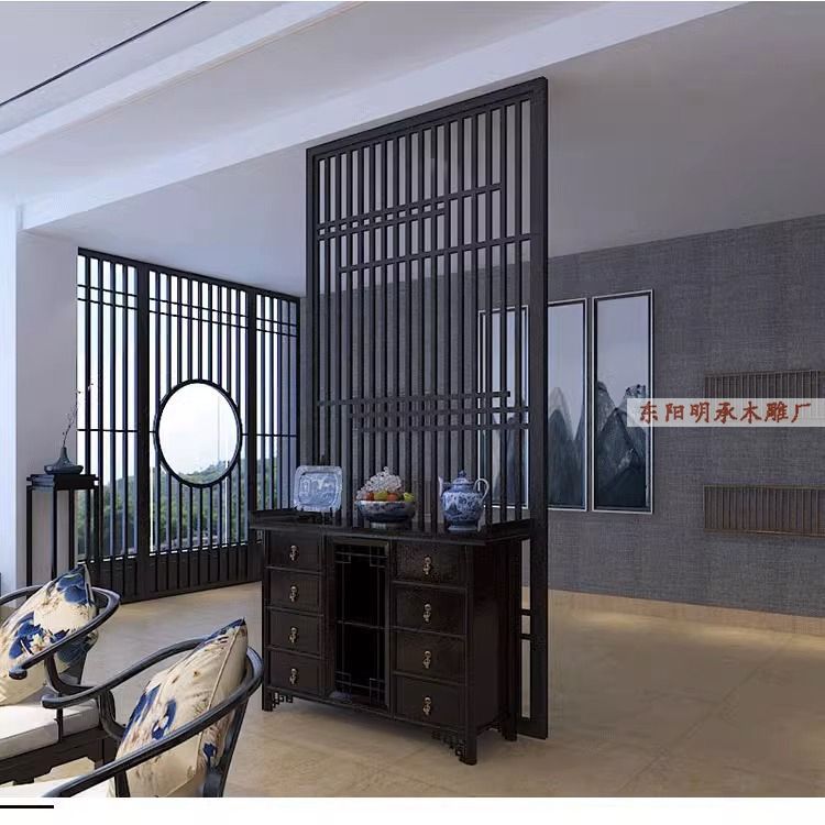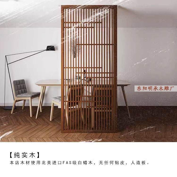 현대적인 스타일의 중공 단단한 나무 스크린, 거실 입구 파티션, 나무 스트립 격자, 입구 차단, 새로운 중국 스타일의 통기성 그릴스토어 가기