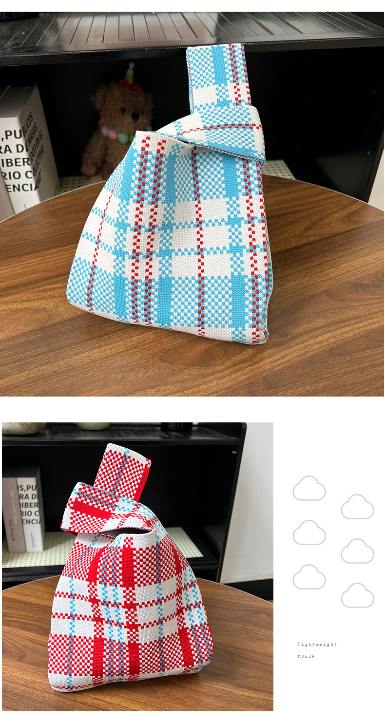 새로운 니트 핸드백 여성의 패션 모든 일치 학생 커플 여행 격자 무늬 패브릭 가방 빈티지 휴대 전화 가방 핸드백스토어 가기