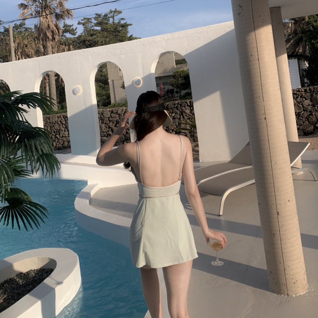 크로스 보더 신선한 소녀 슬링 가슴 패드 수영복 달콤한 샤넬 스타일 심플 보수 스커트 원피스 수영복스토어 가기