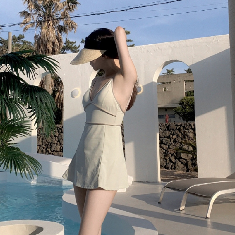 크로스 보더 신선한 소녀 슬링 가슴 패드 수영복 달콤한 샤넬 스타일 심플 보수 스커트 원피스 수영복