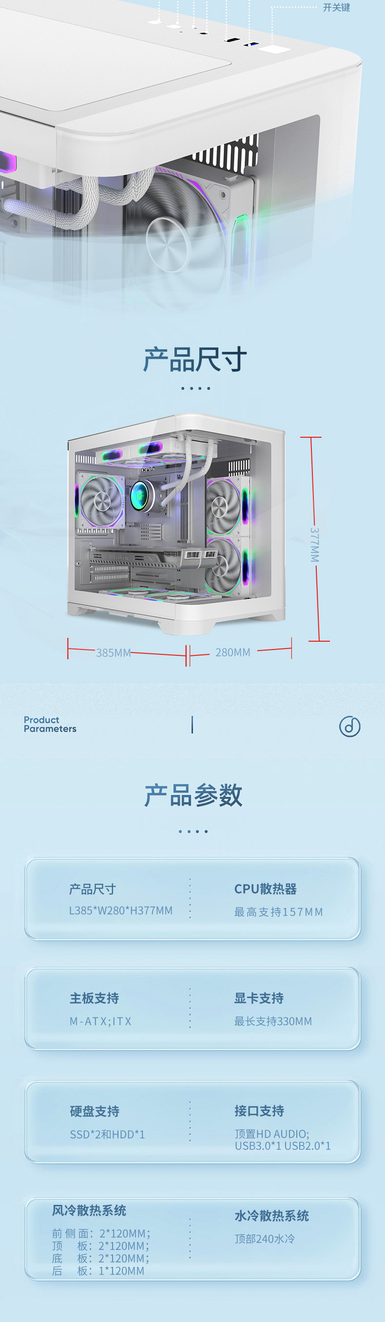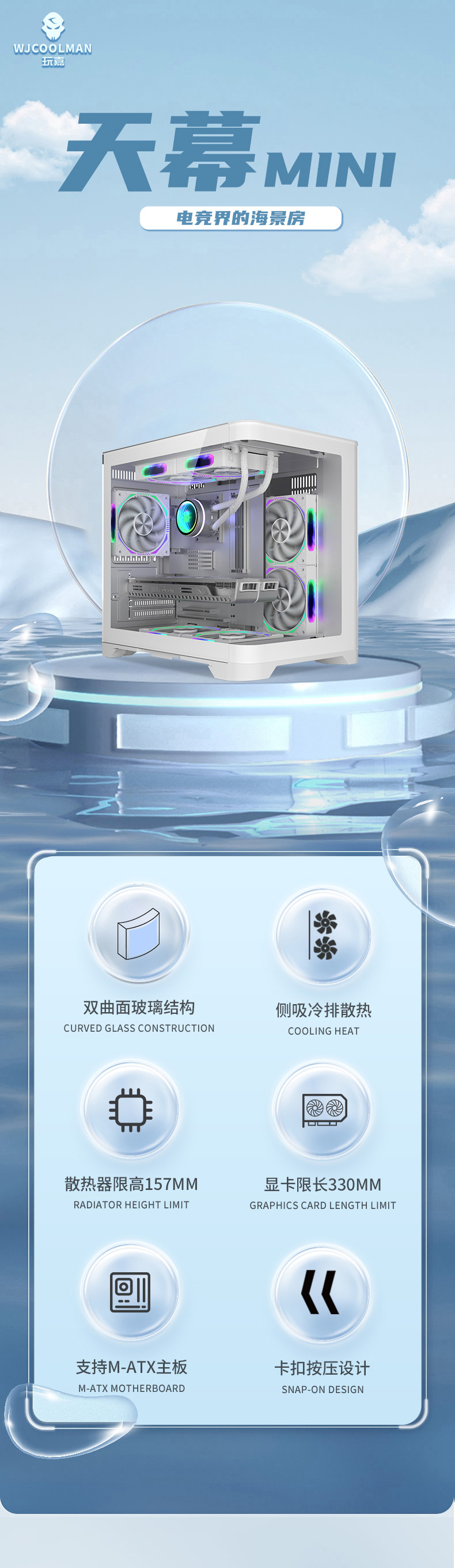 크로스 보더 캐노피 미니 데스크탑 컴퓨터 섀시 수냉식 메인 섀시 파노라마 바다 전망 룸 게임 섀시 유리