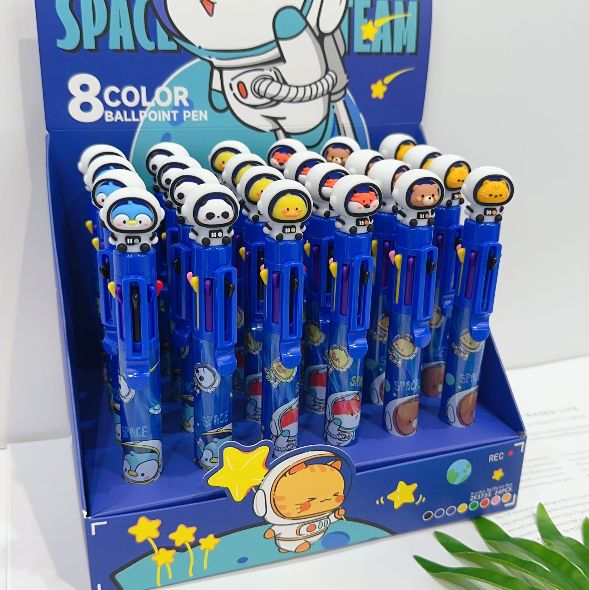 새로운 우주 비행사 동물 8 색 볼펜 학생 귀여운 만화 여러 가지 빛깔의 손 계정 펜 컬러 펜 프레스 오일 펜