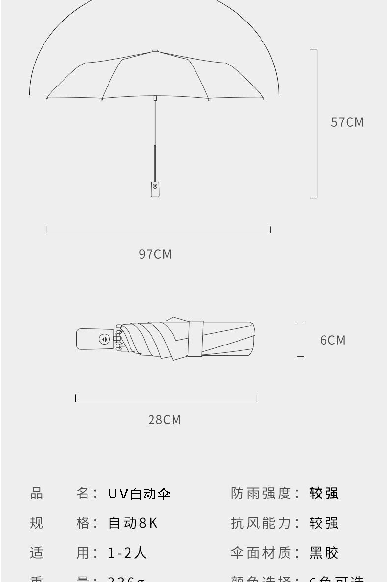 • 8-뼈 자동 우산 UV 블랙
