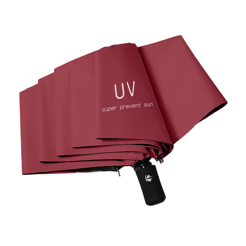 • 8 뼈 자동 우산 UV 버건디