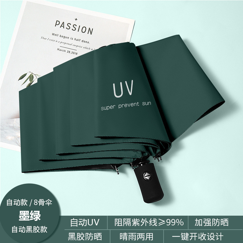 • 8 뼈 자동 우산 UV 다크 그린