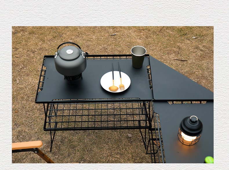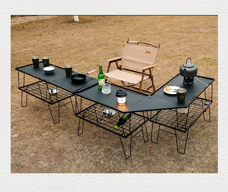 야외 그리드 테이블 테이블 보드 바베큐 테이블 코너 가스 스토브 IGT 철 그물 테이블 캠핑 테이블 보드 조합 피크닉 테이블
