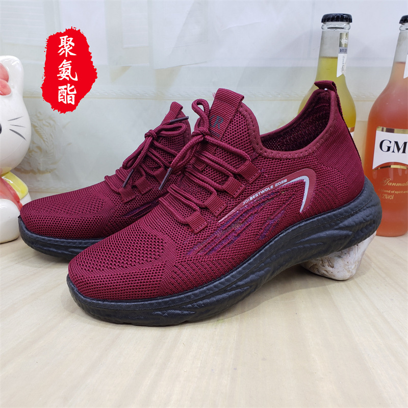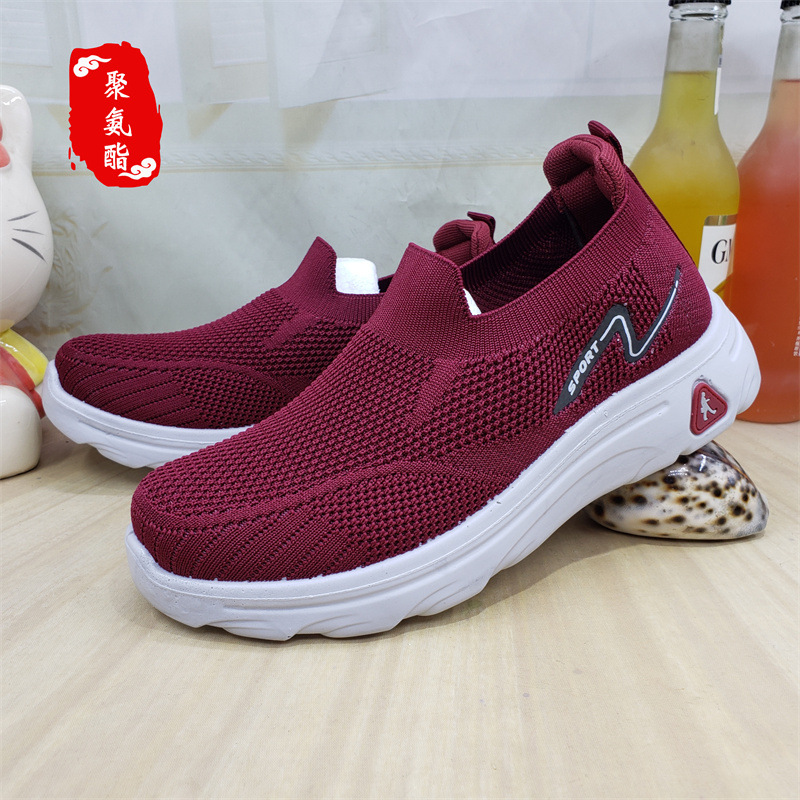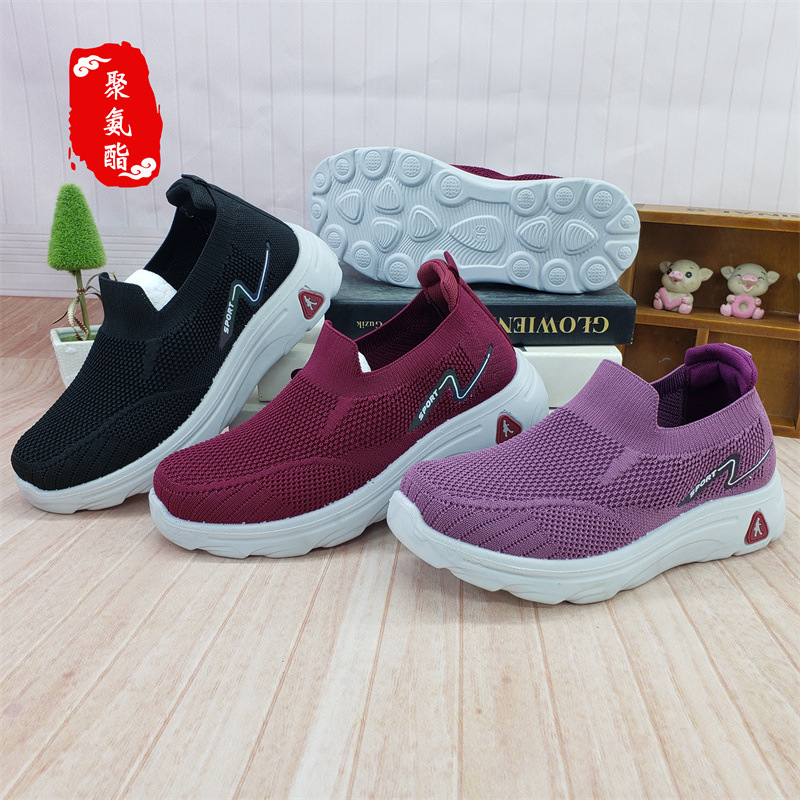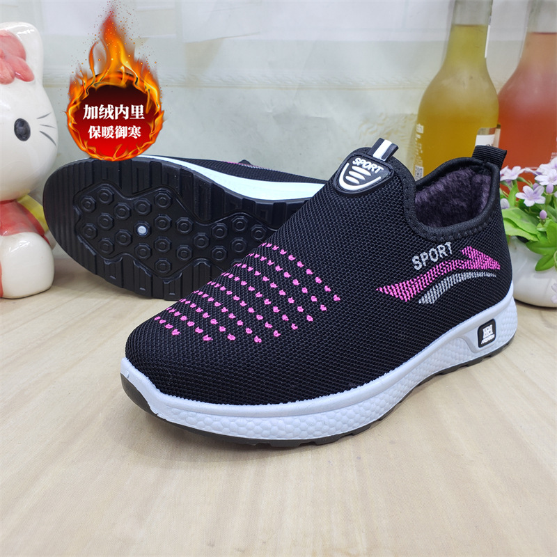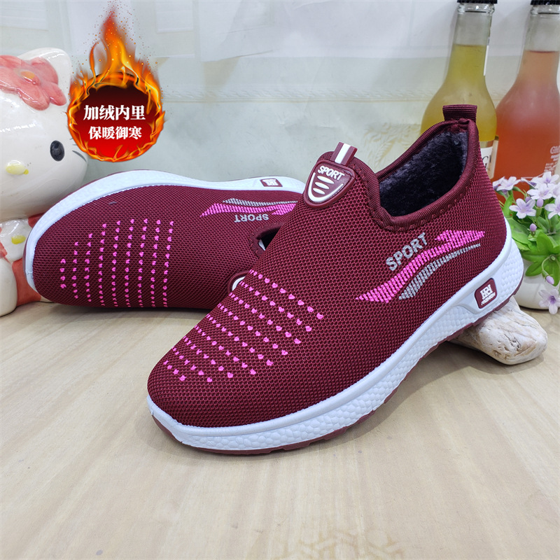 【소매】24가지 신상품, 올드 베이징 스타일 슬립온 레이스업 여성용 단화, 스포츠 코튼 메쉬, 고무 밑창, 플라이 니트 워킹화스토어 가기