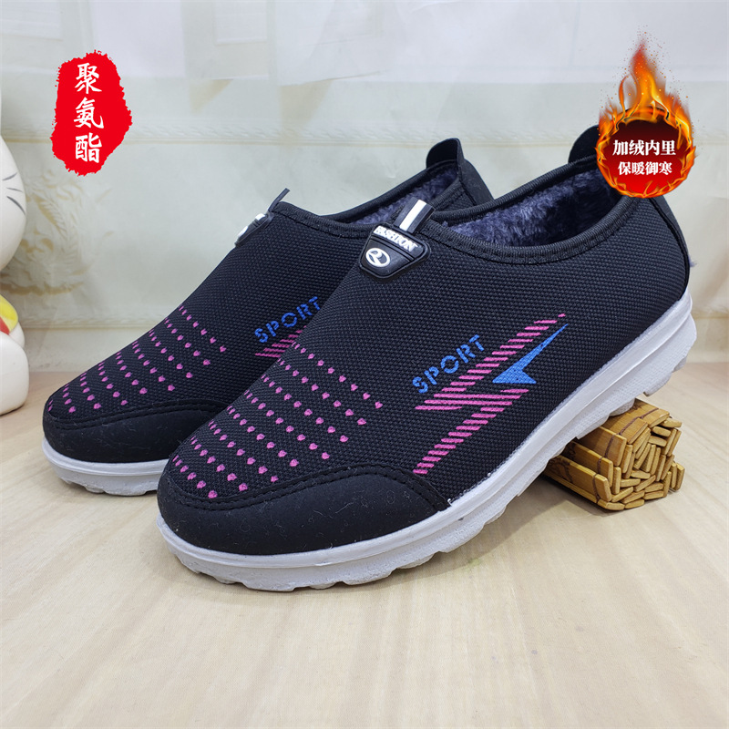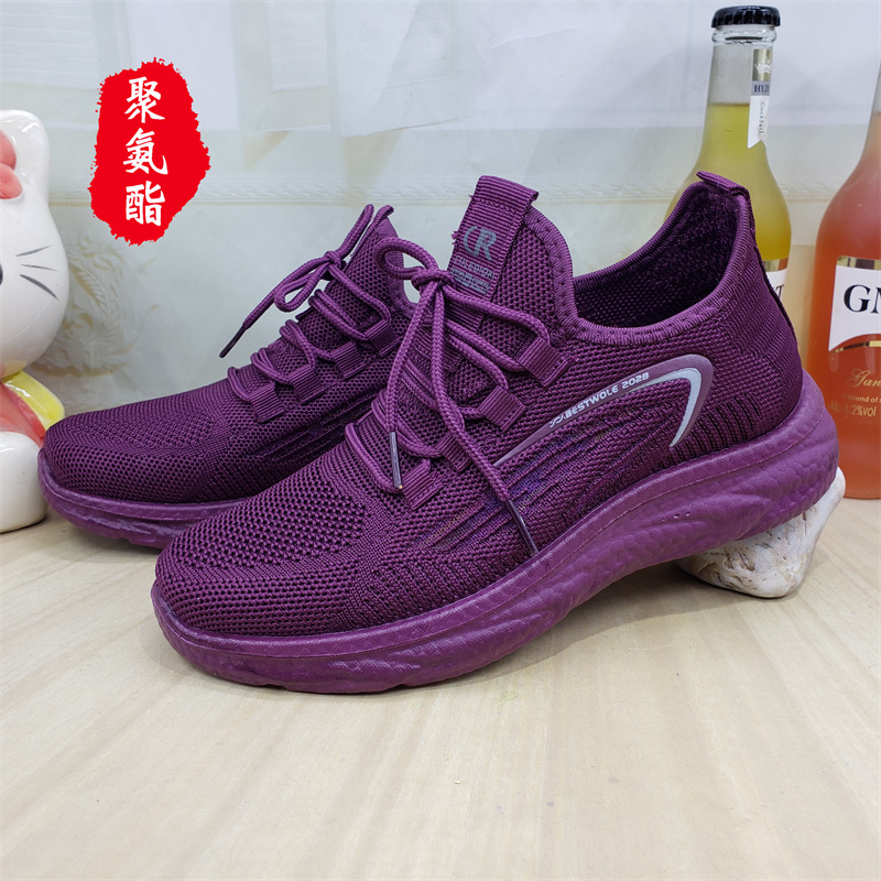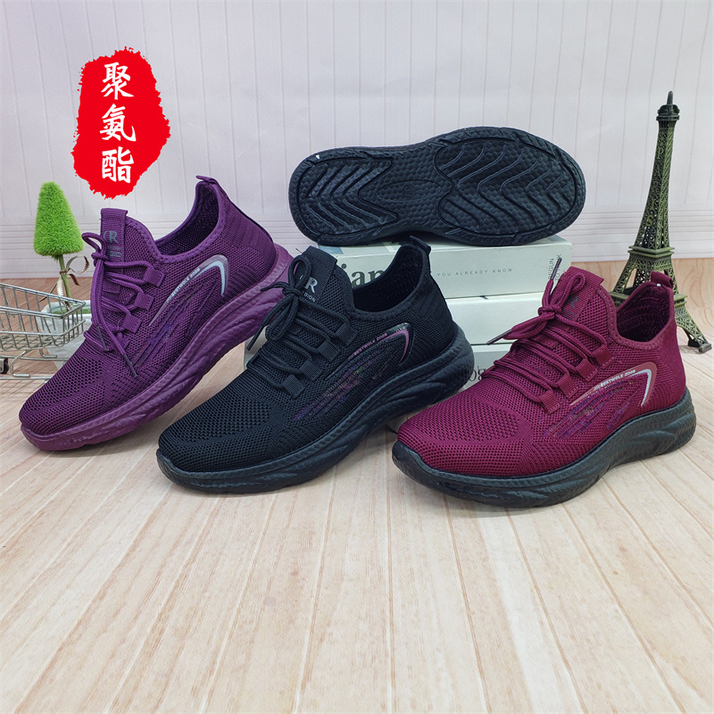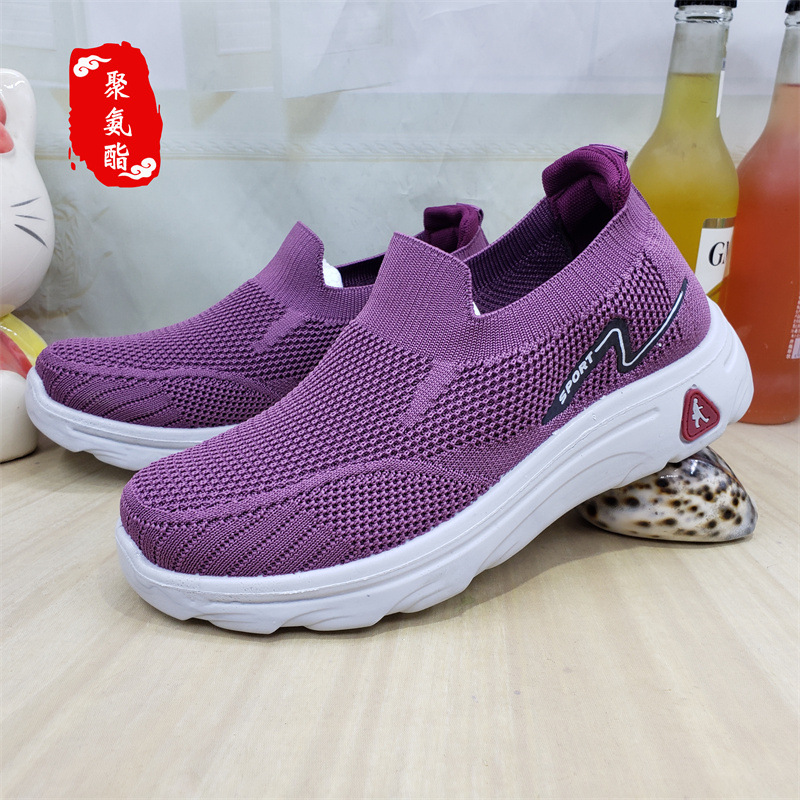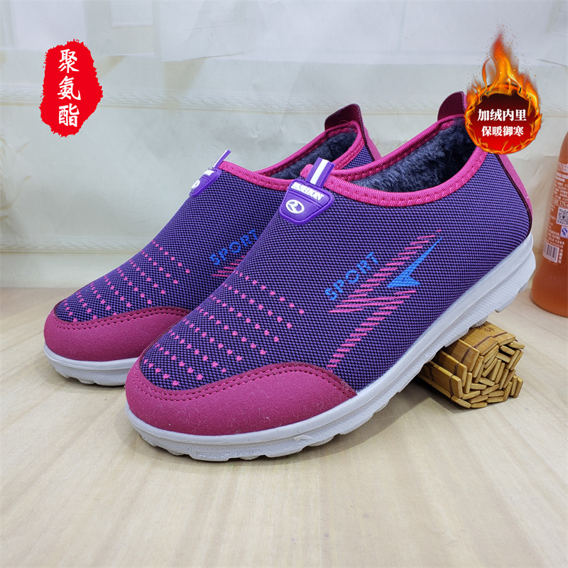 【소매】24가지 신상품, 올드 베이징 스타일 슬립온 레이스업 여성용 단화, 스포츠 코튼 메쉬, 고무 밑창, 플라이 니트 워킹화스토어 가기