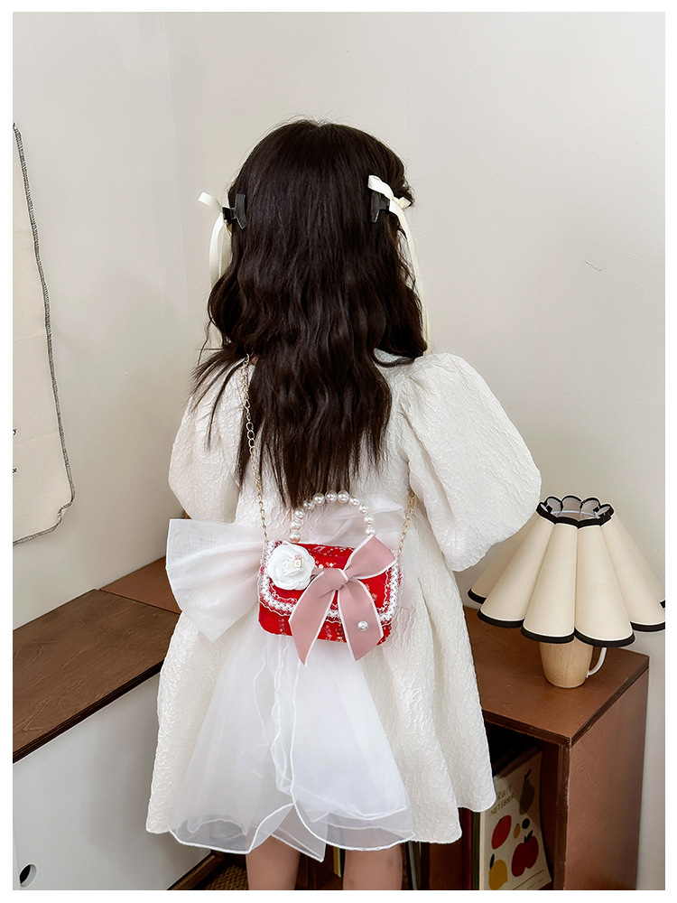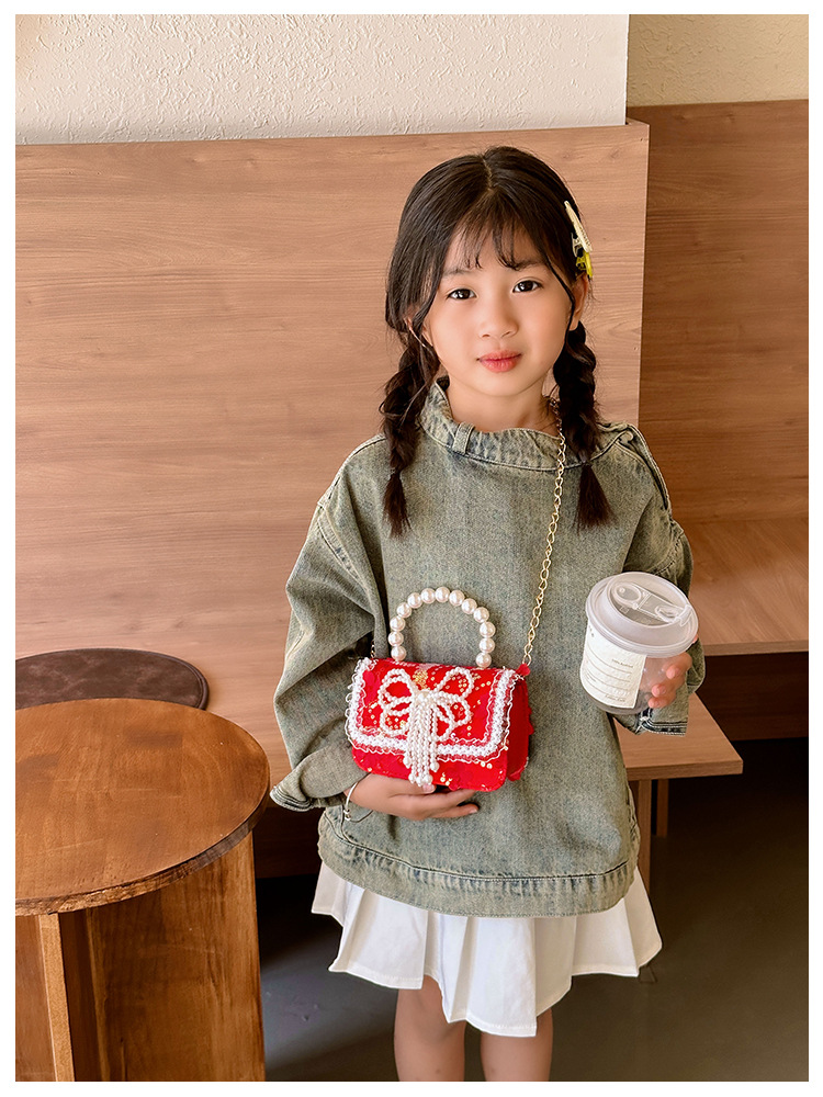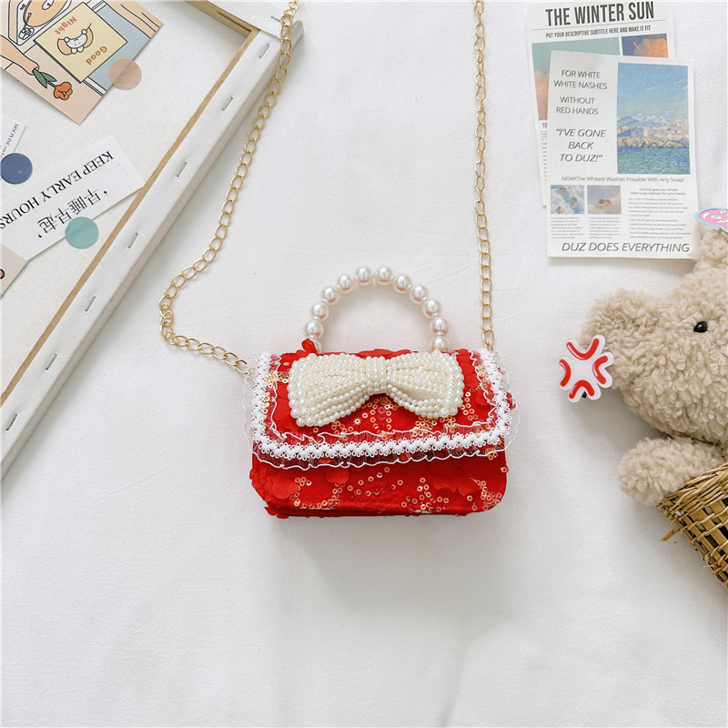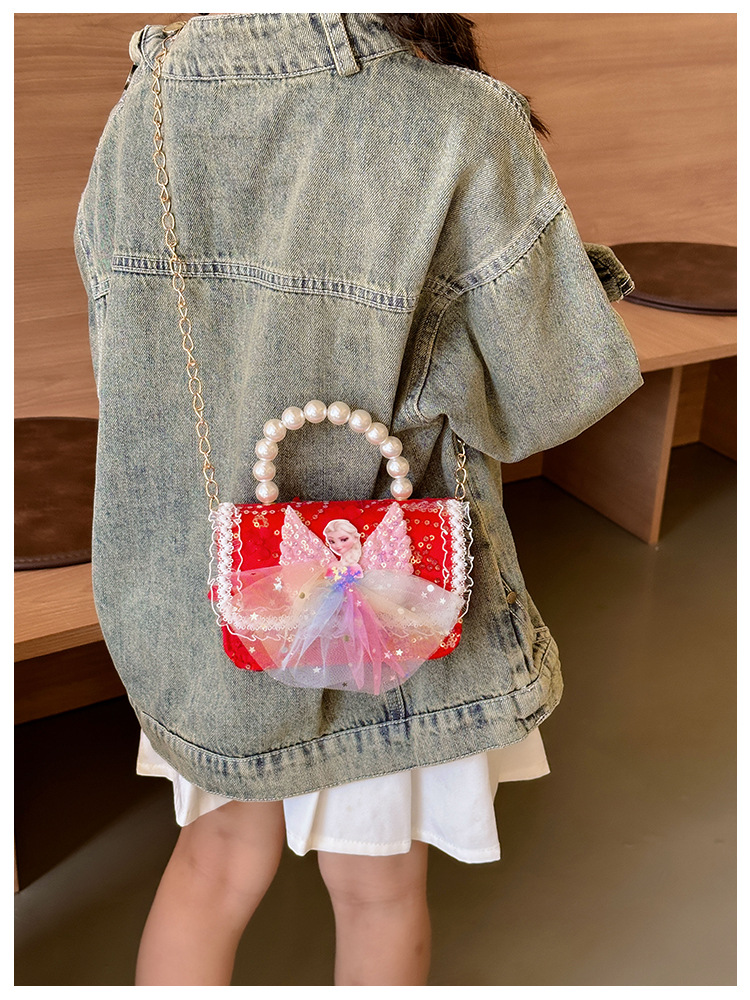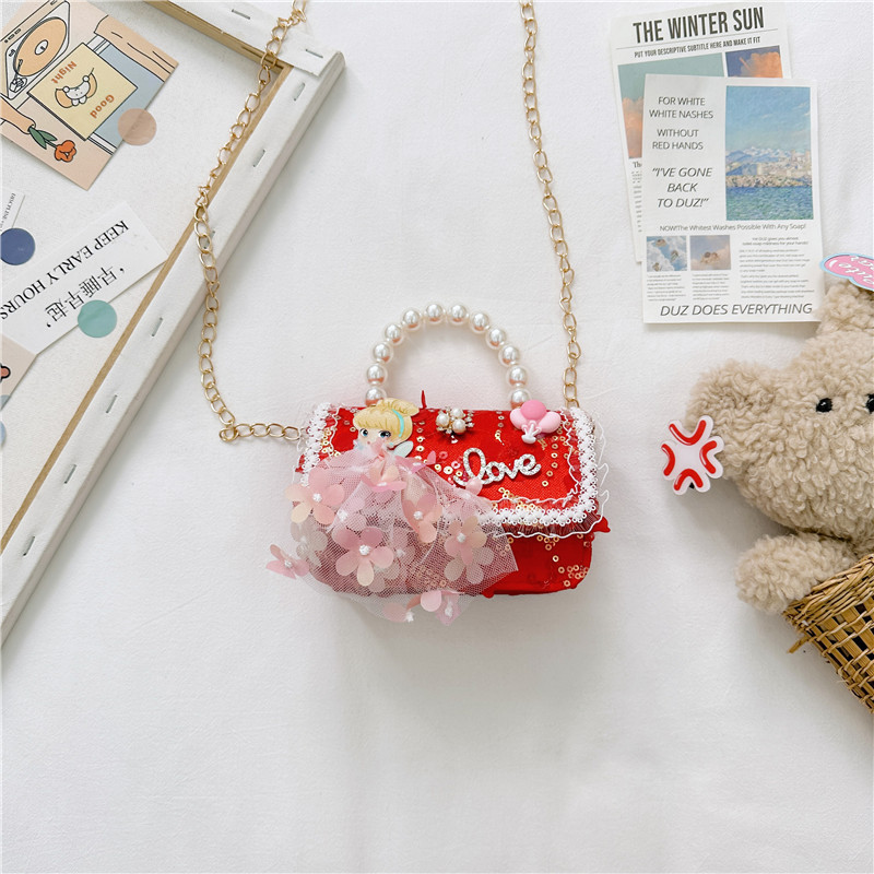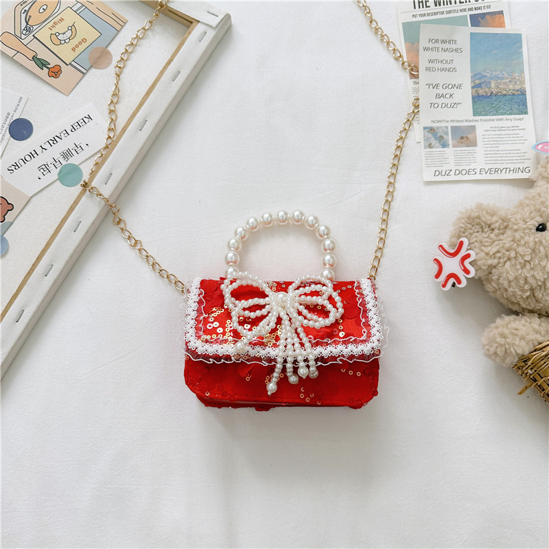 어린이 가방 한국식 진주 액세서리 아기 핸드백 소녀 메신저 가방 공주 스타일 소녀의 어깨 가방