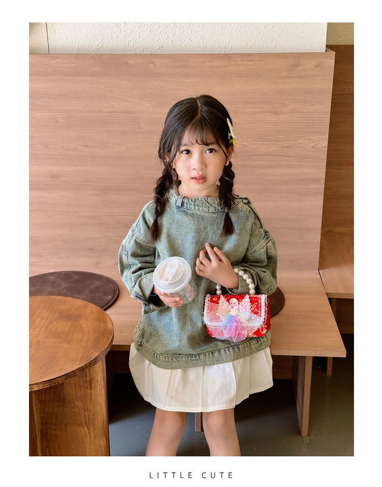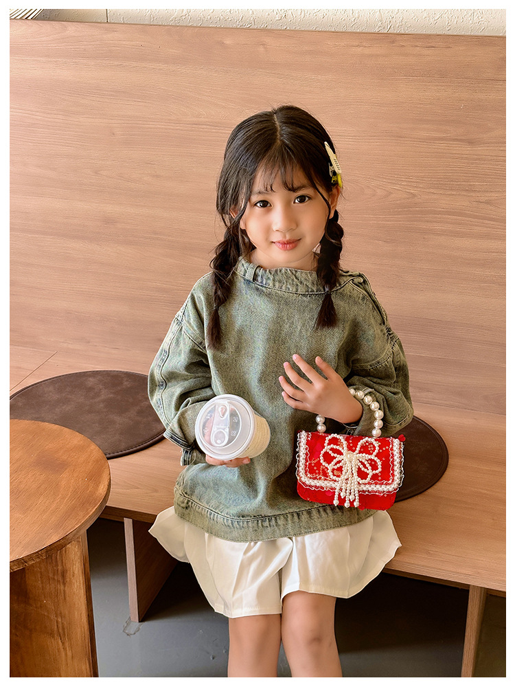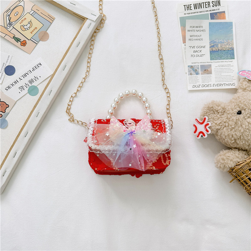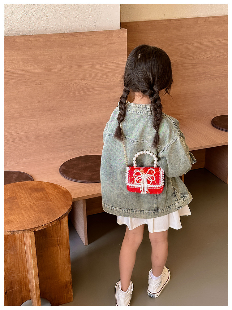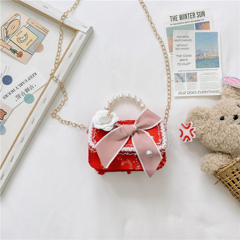 어린이 가방 한국식 진주 액세서리 아기 핸드백 소녀 메신저 가방 공주 스타일 소녀의 어깨 가방