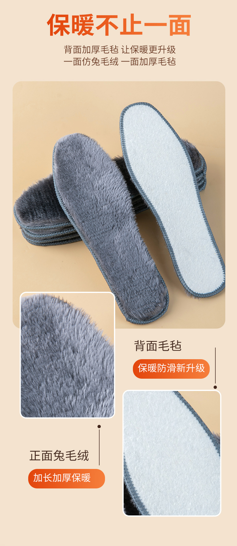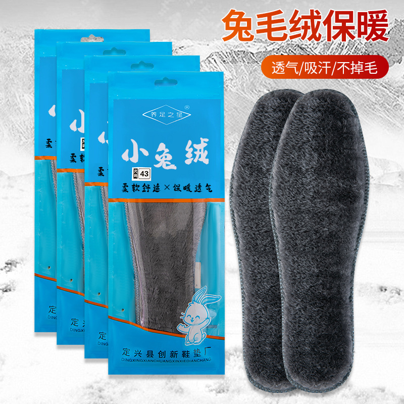 모조 토끼 머리 두꺼운 따뜻한 씻어 펠트 깔창 겨울 남성과 여성의 기모 방한 브러시 변경되지 않은 면 깔창스토어 가기