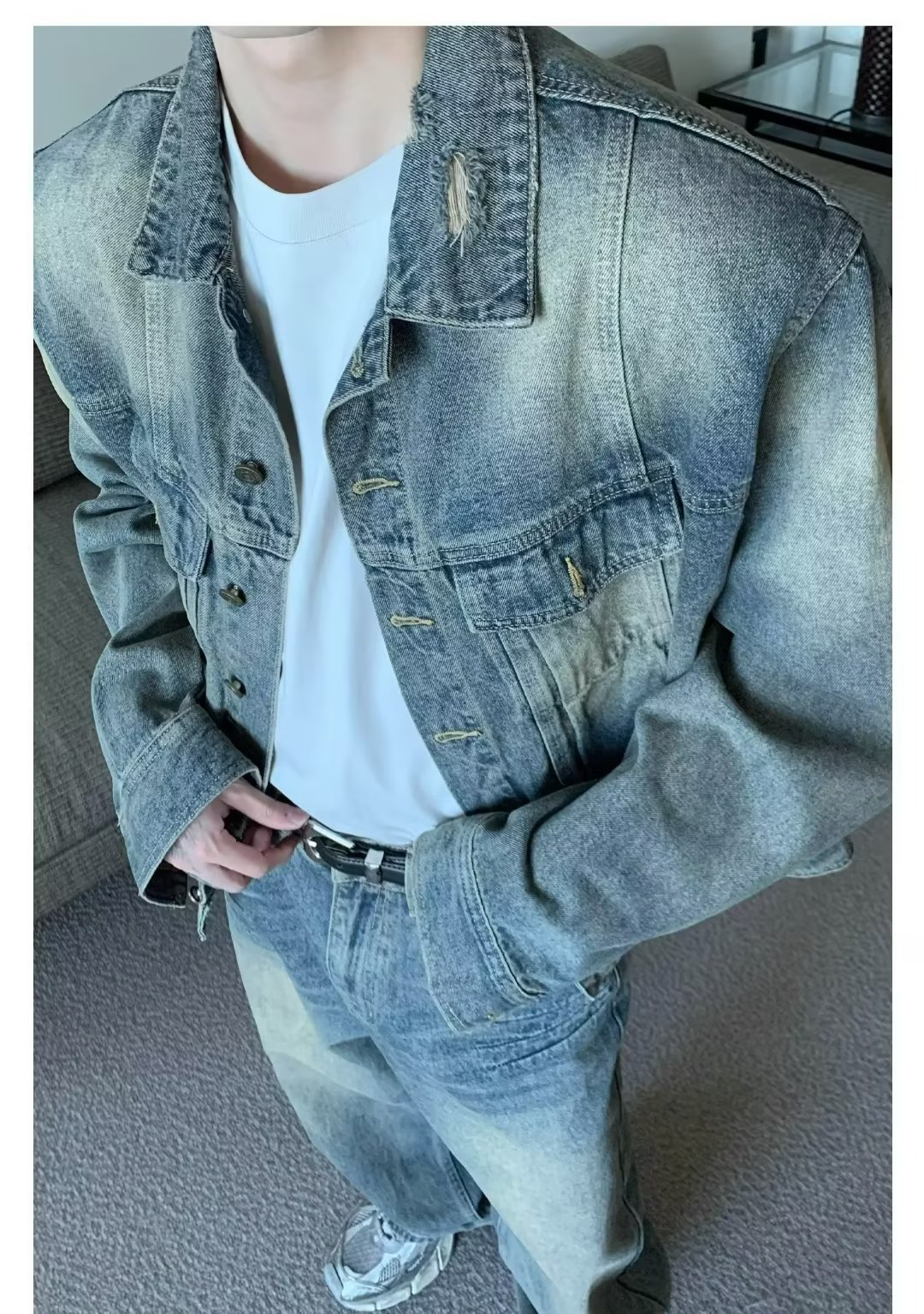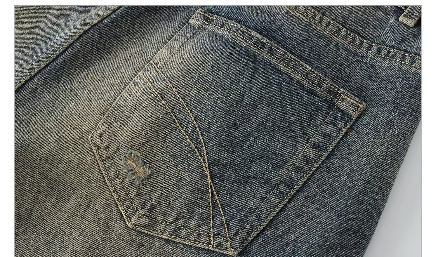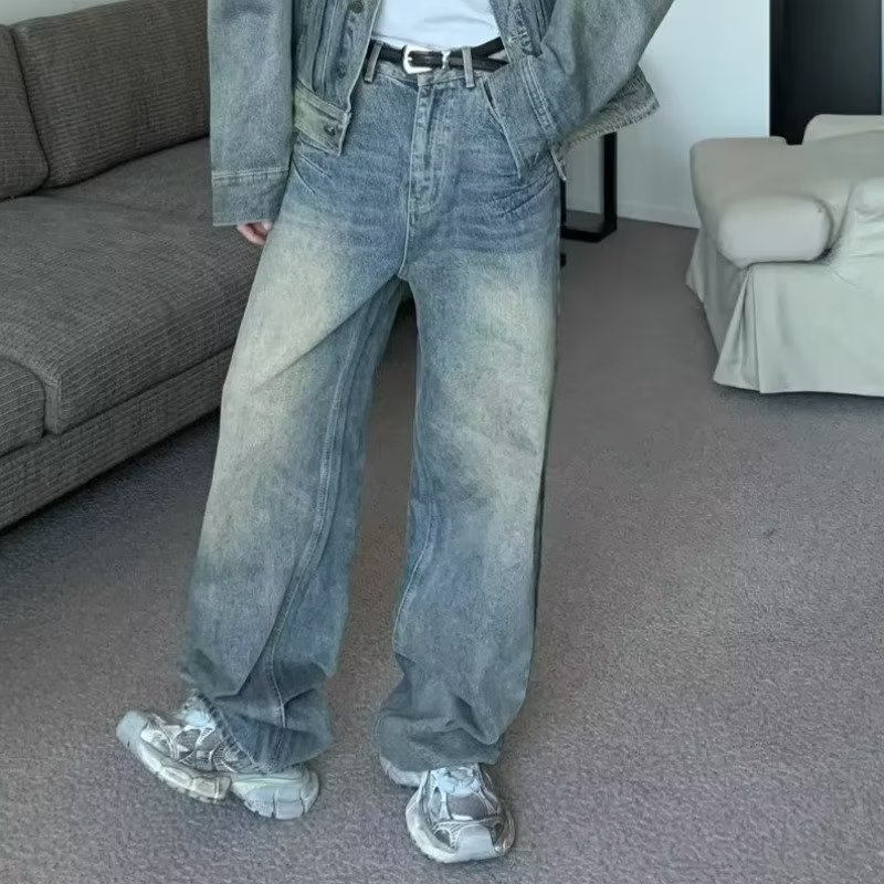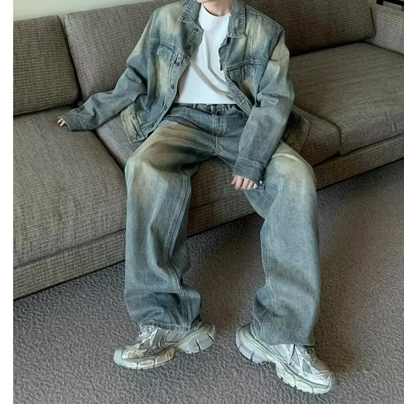 2023 가을 빈티지 씻은 노란 진흙 염색 청바지 틈새 바지 미국 하이 스트리트 올드 힙합 와이드 레그 바지 남성스토어 가기