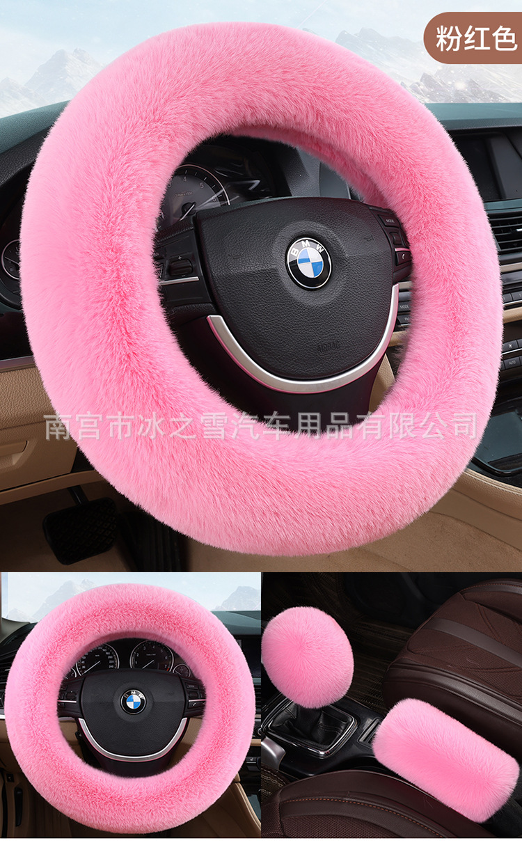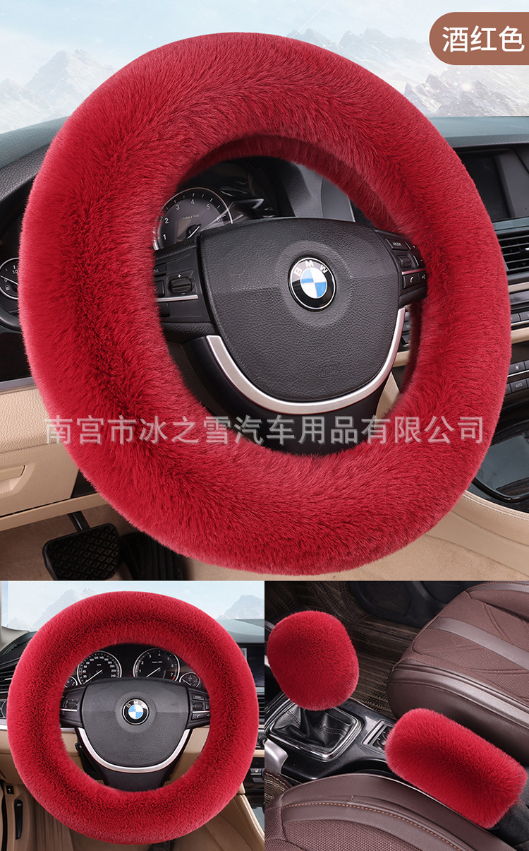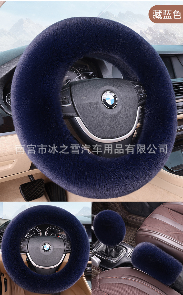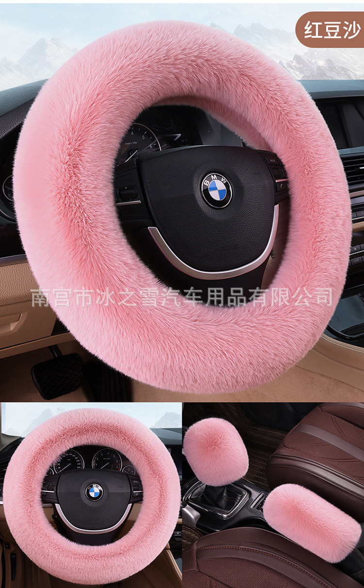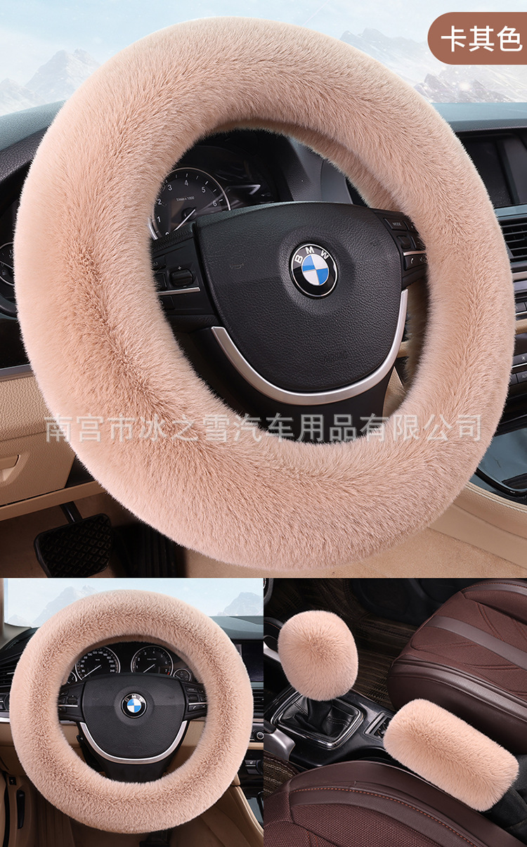 새로운 크로스 보더 플러시 핸들 커버 모조 토끼 모피 자동차 핸들 커버 탄성 크로스 보더 핸드 브레이크 커버 3 종 세트