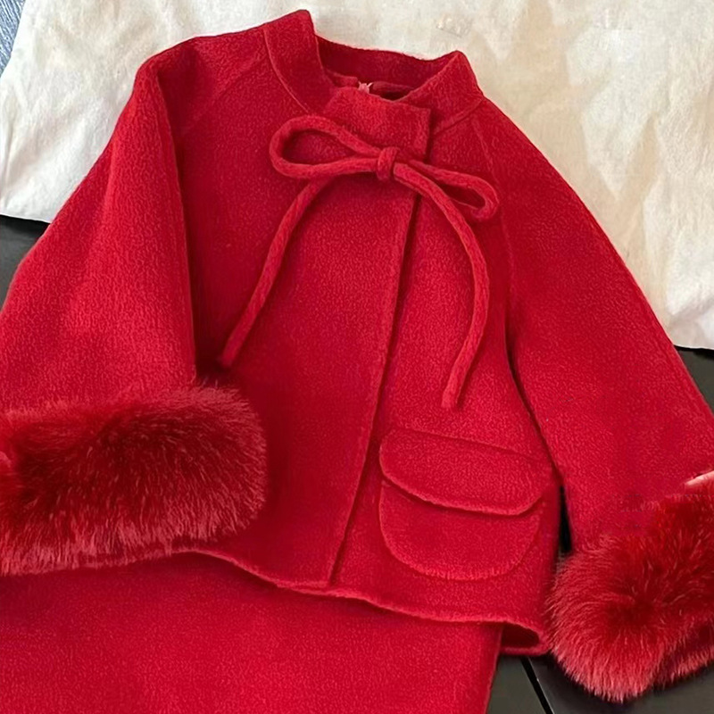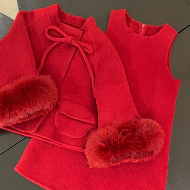 여자 탑 재킷 2024 가을, 겨울 새로운 모직 아동 의류 스커트 재킷 아기 소녀 코트 조끼 스커트 정장스토어 가기