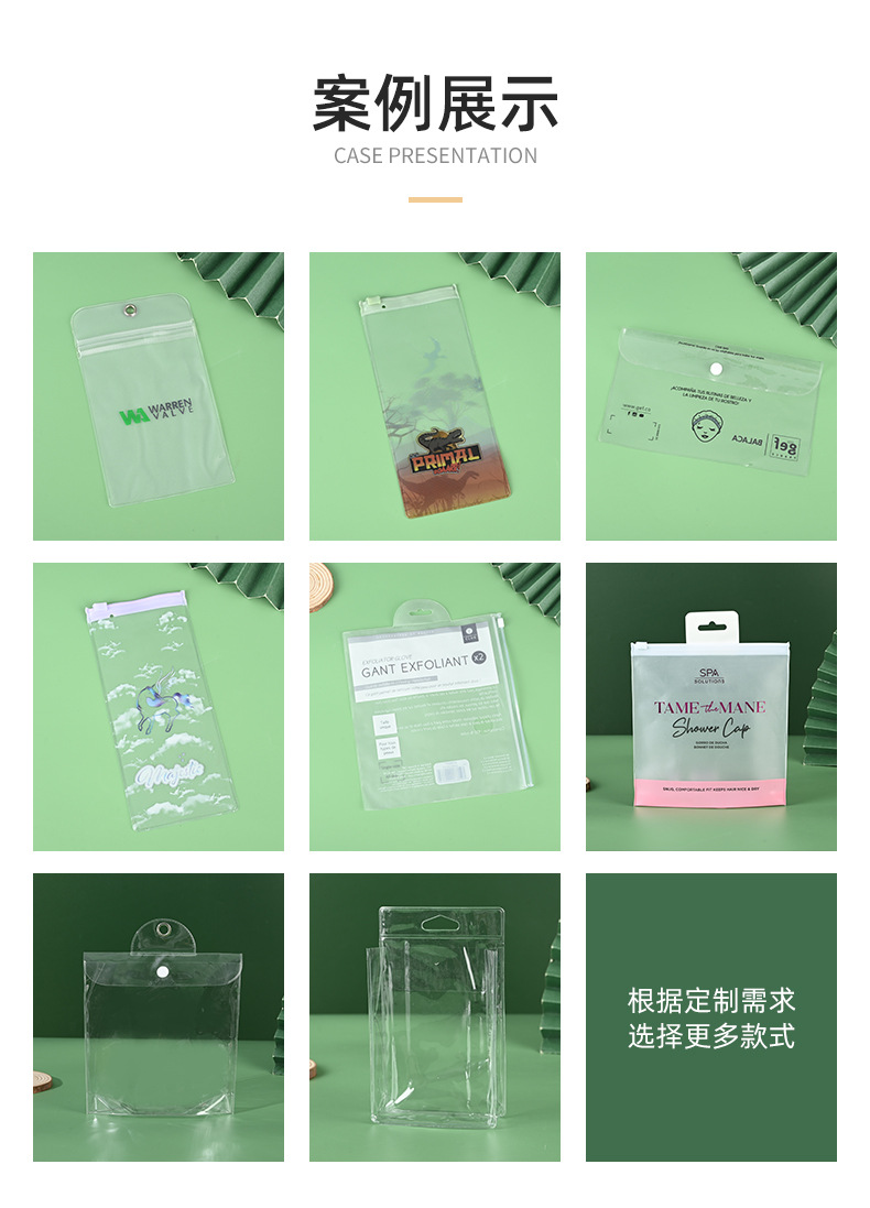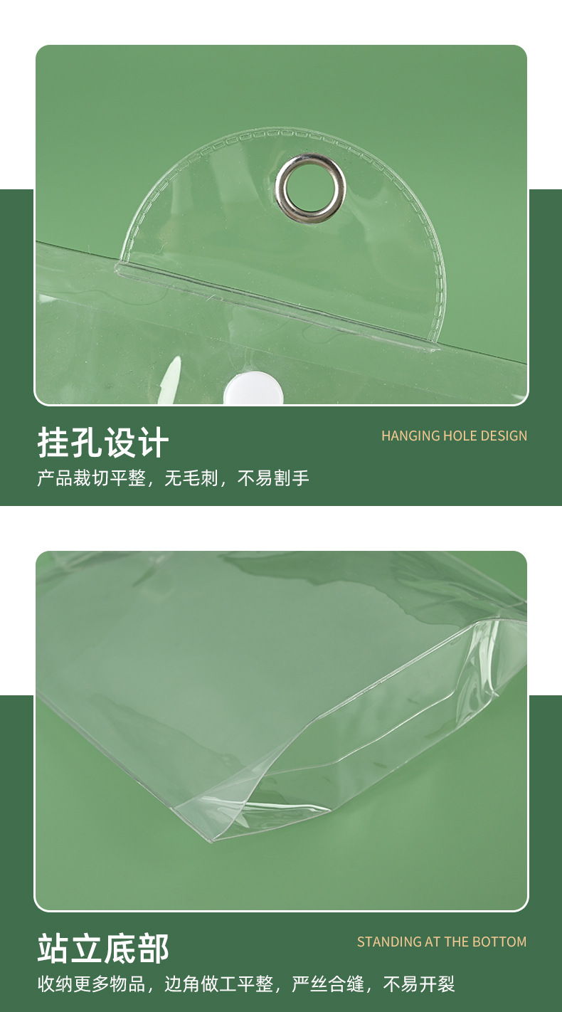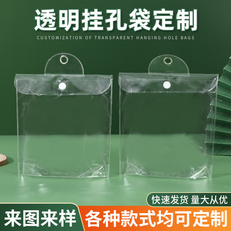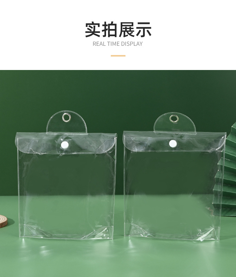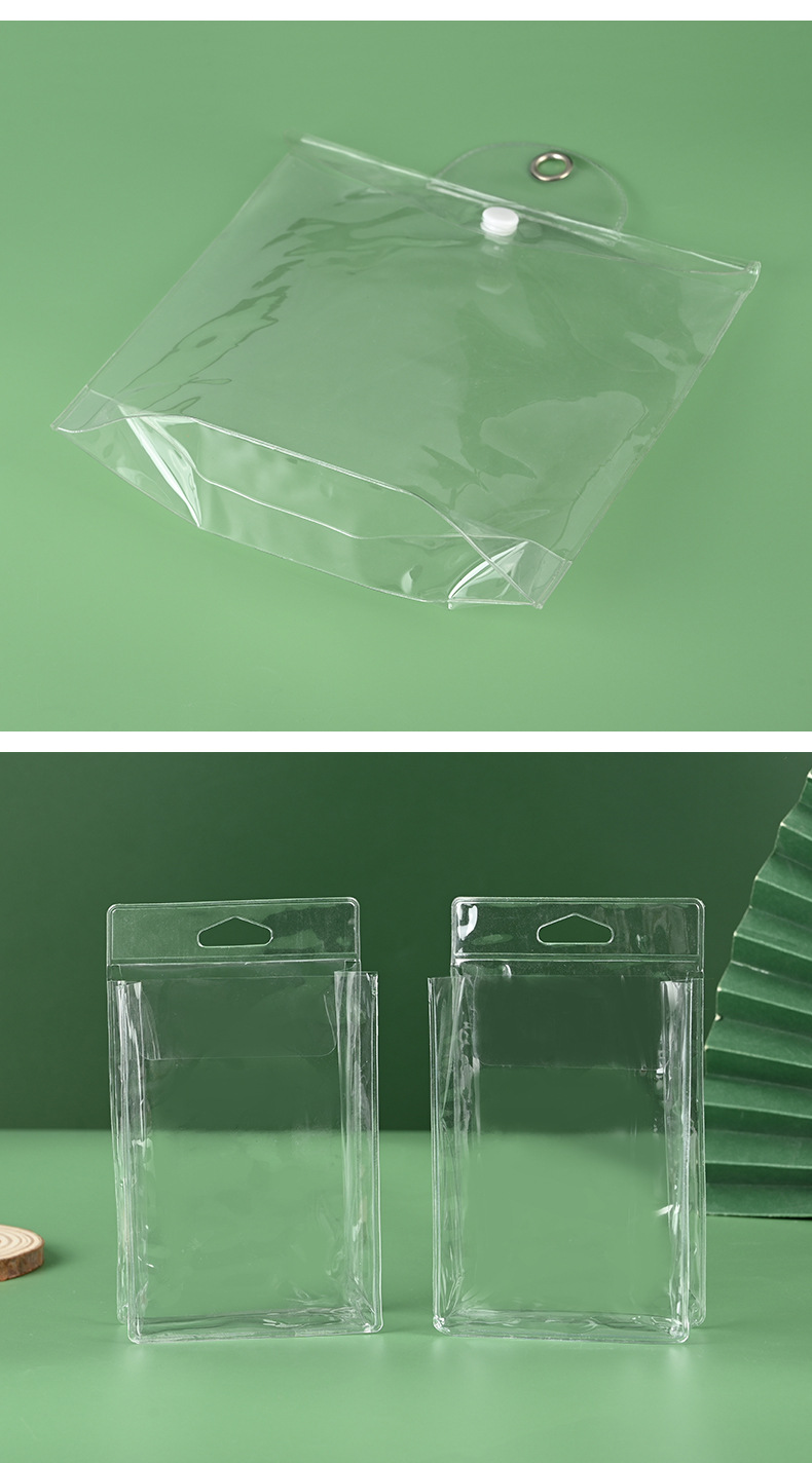 화장품 문구 PVC 보관 가방 3차원 PVC 스냅 가방 투명 플라스틱 포장 후크 가방 맞춤 로고스토어 가기