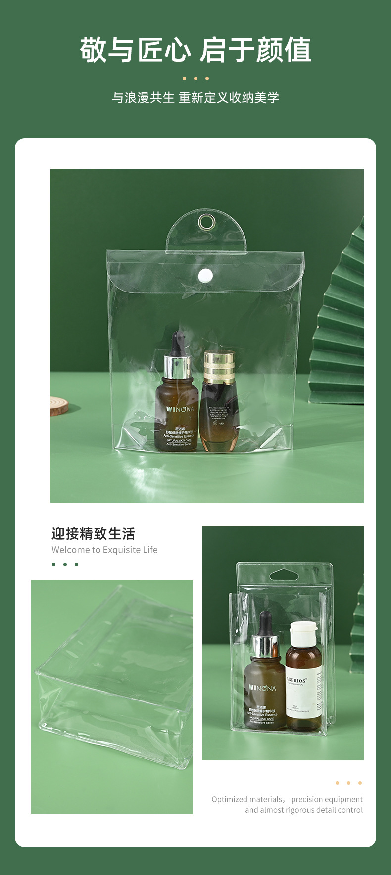 화장품 문구 PVC 보관 가방 3차원 PVC 스냅 가방 투명 플라스틱 포장 후크 가방 맞춤 로고