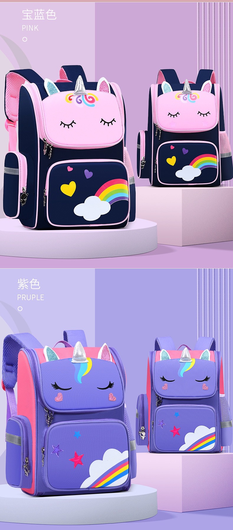 새로운 책가방 초등학교 소년과 소녀 1-6 학년 대용량 배낭 어린이 유니콘 귀여운 배낭 가방스토어 가기