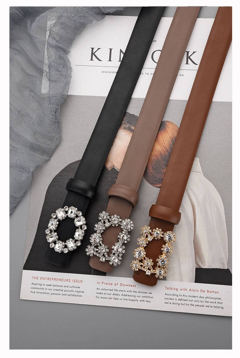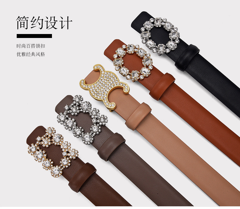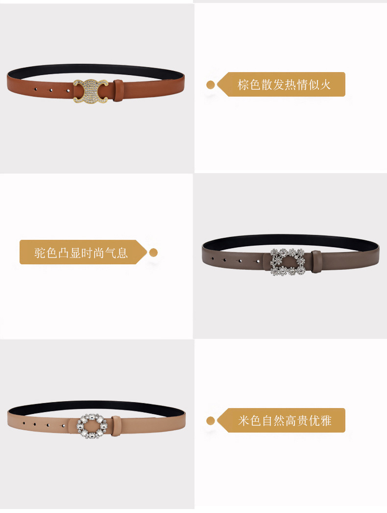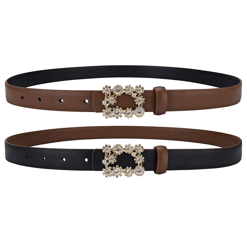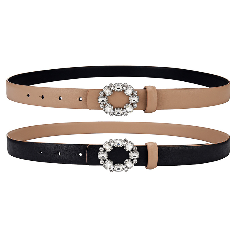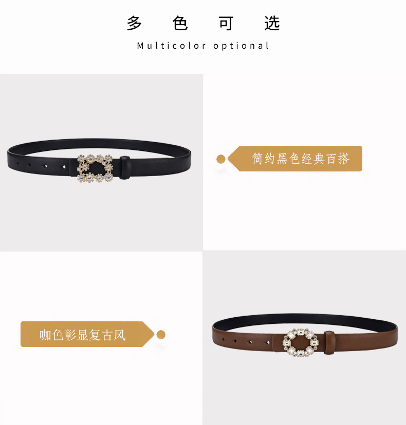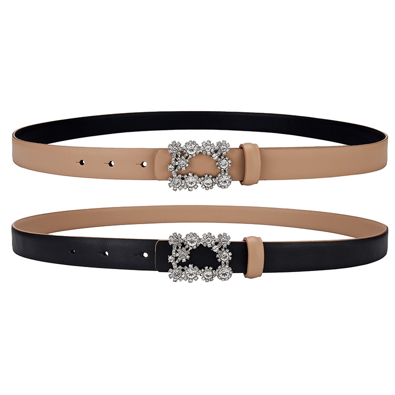 여성용 벨트 다이아몬드 버클 양면 소가죽 핀 버클 심플 조커 고급 장식 가죽 패션 여성 바지 벨트 도매스토어 가기