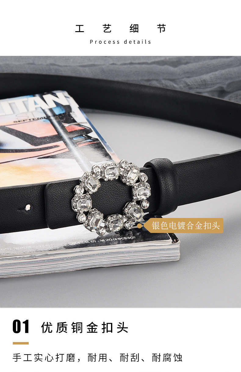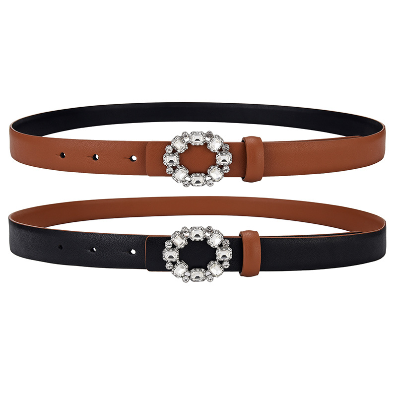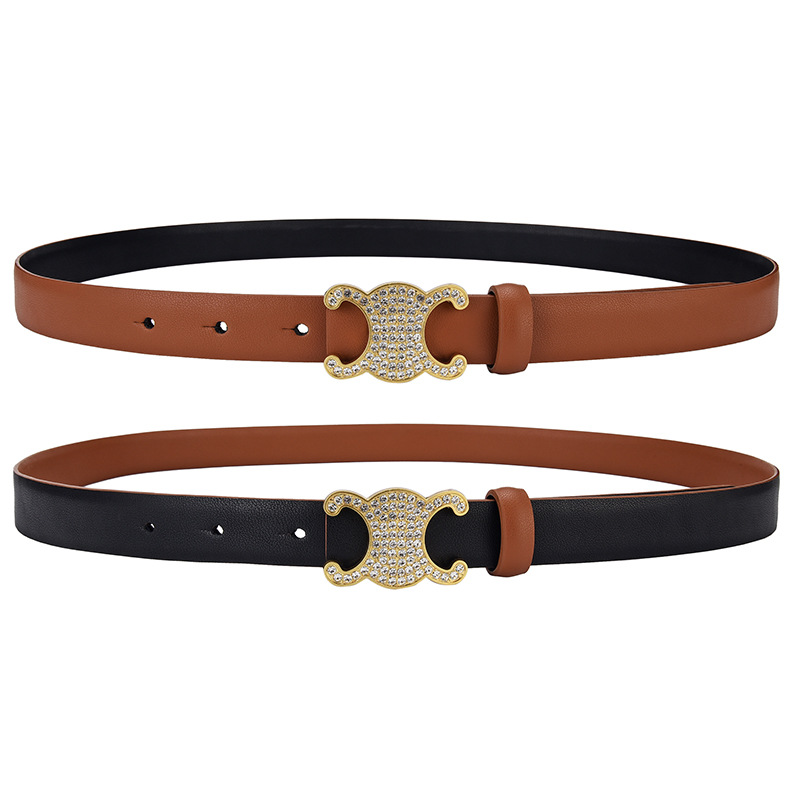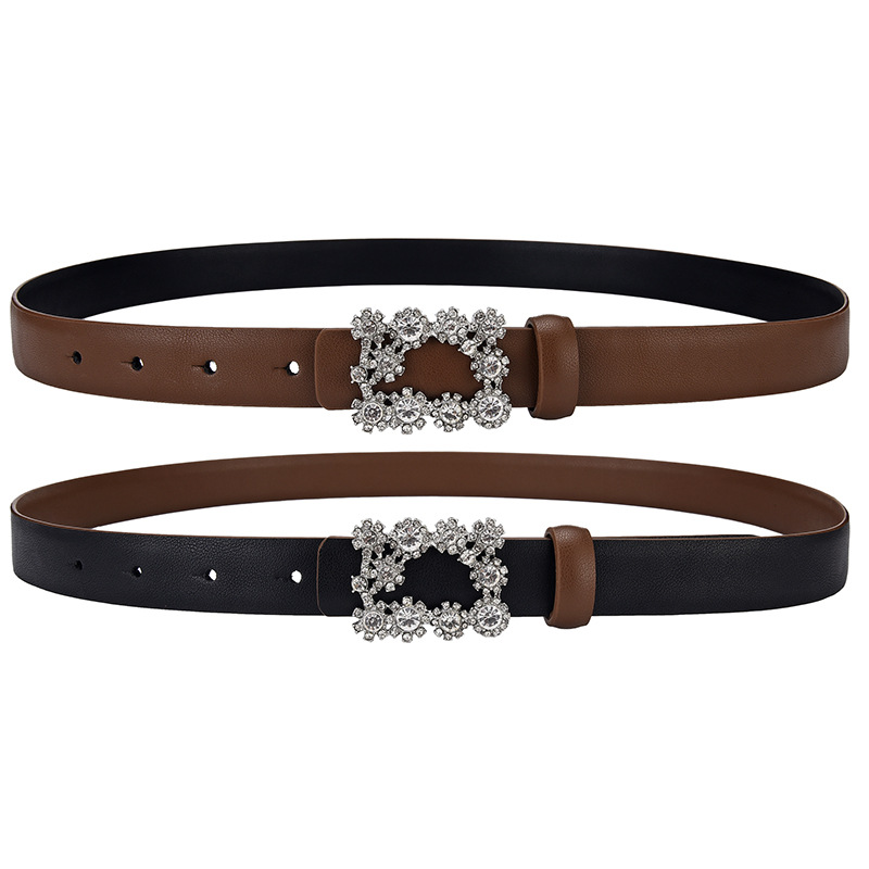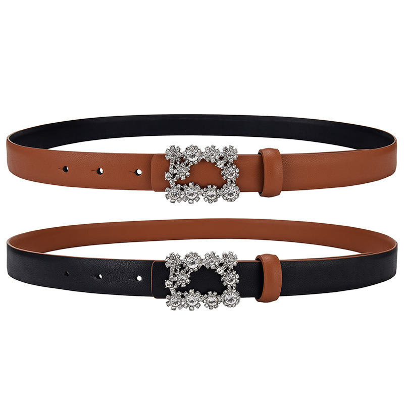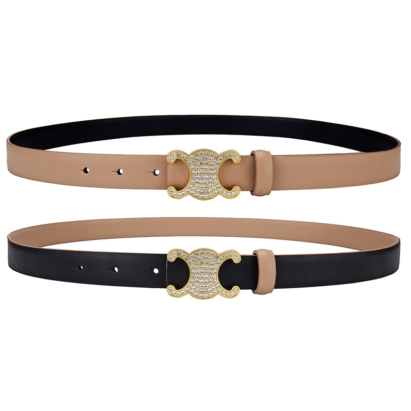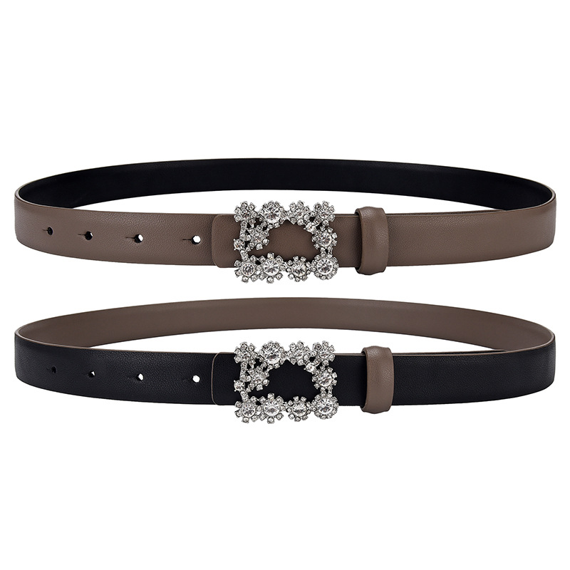여성용 벨트 다이아몬드 버클 양면 소가죽 핀 버클 심플 조커 고급 장식 가죽 패션 여성 바지 벨트 도매