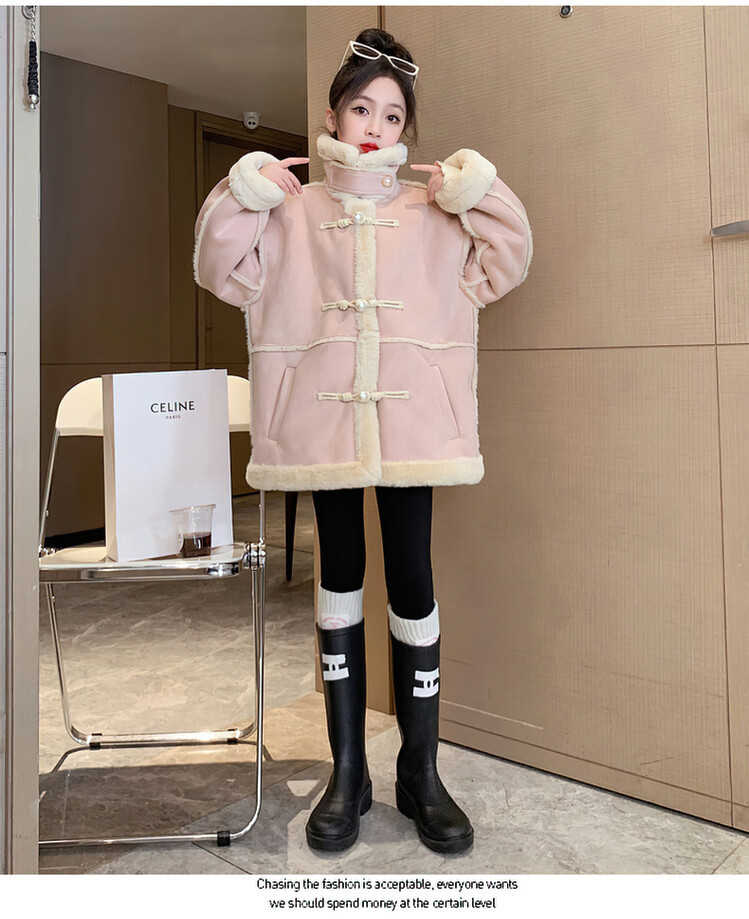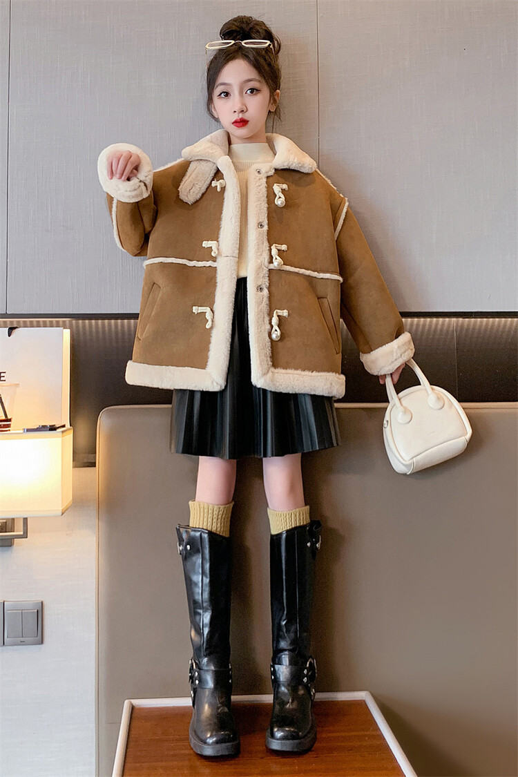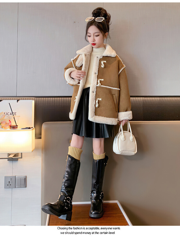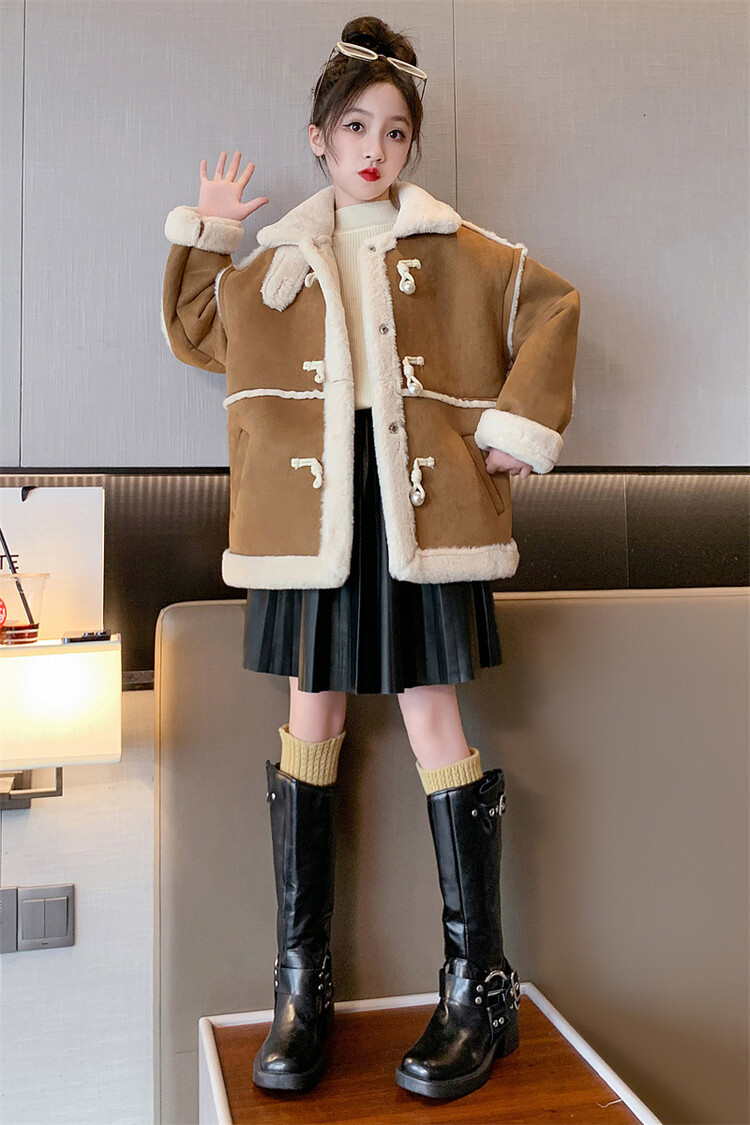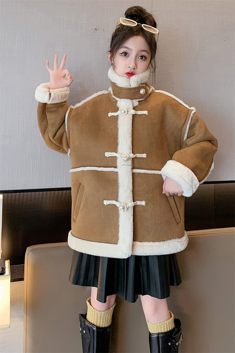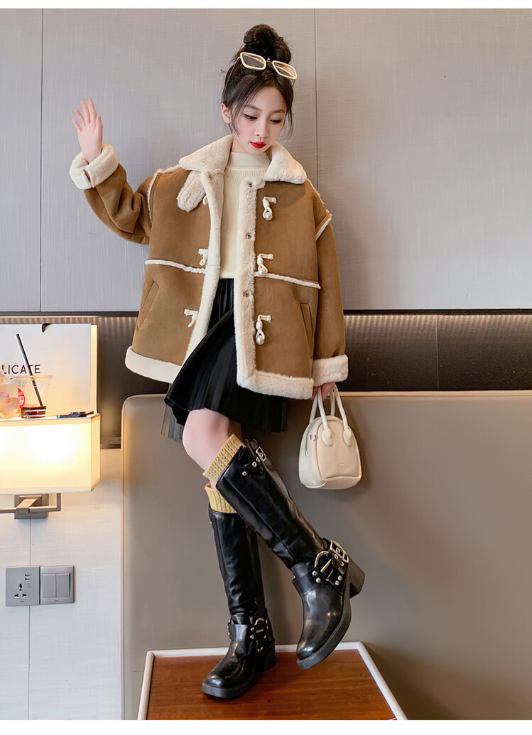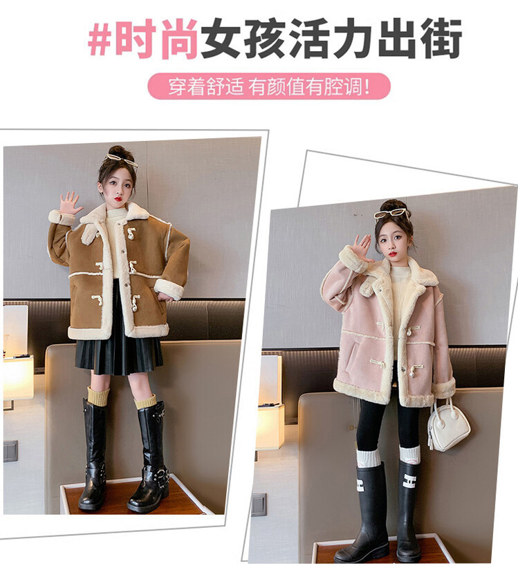 여아용 모피 일체형 한국 스타일 코트 2024 신상 중대형 아동 가을 겨울 패션 두꺼운 플리스 코트 해외 판매스토어 가기