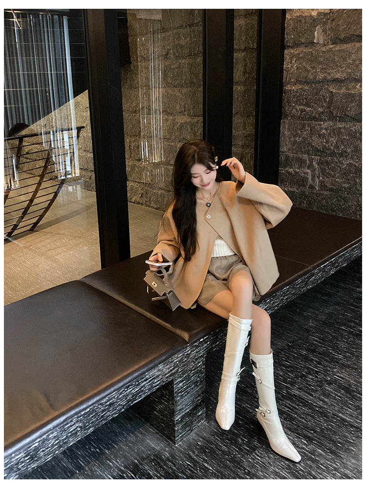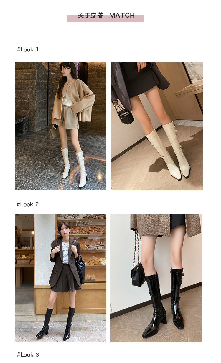 Lingge Studio 하이힐 부츠 여성용 두꺼운 다리 슬리밍 빅 부츠 2023 가을과 겨울 스파이스 부츠스토어 가기