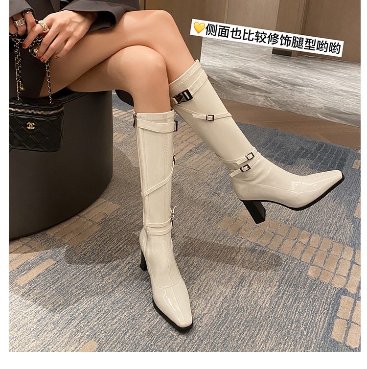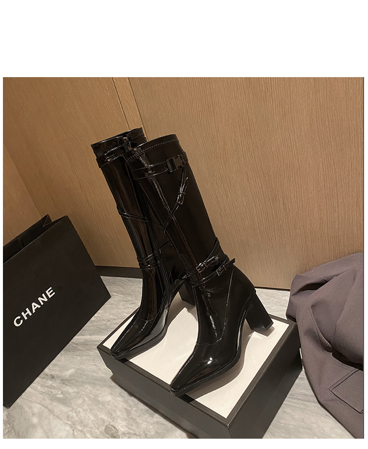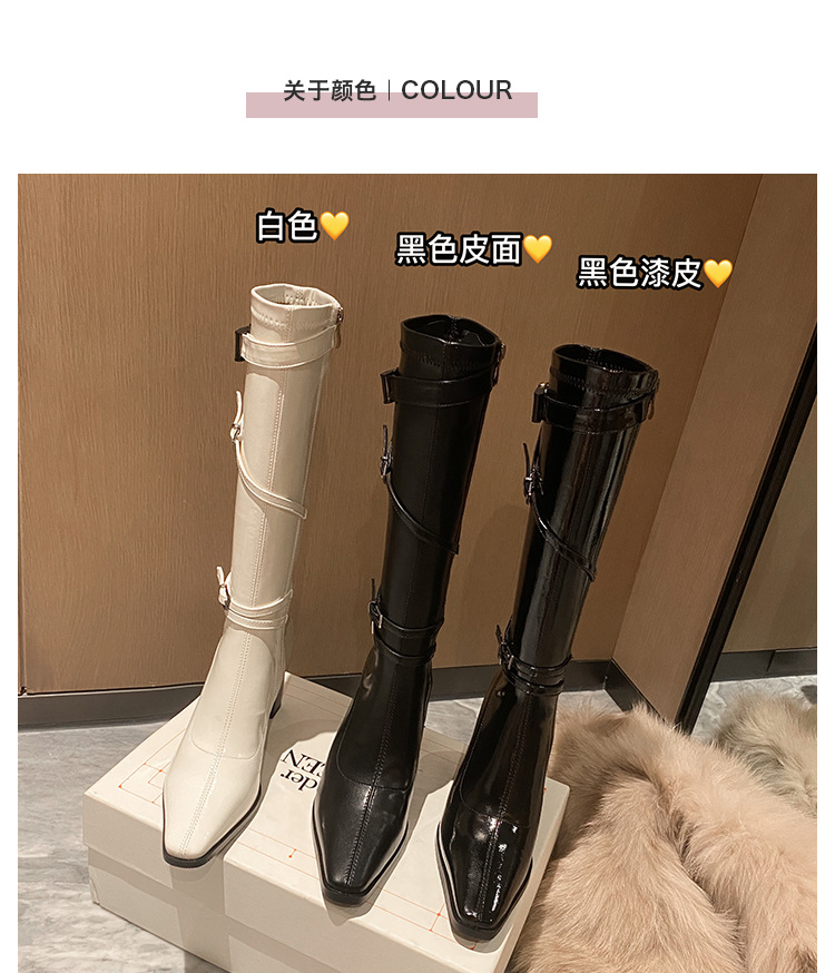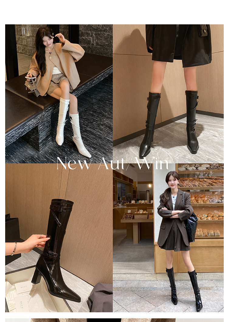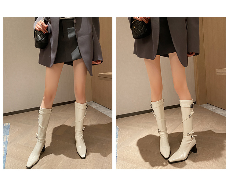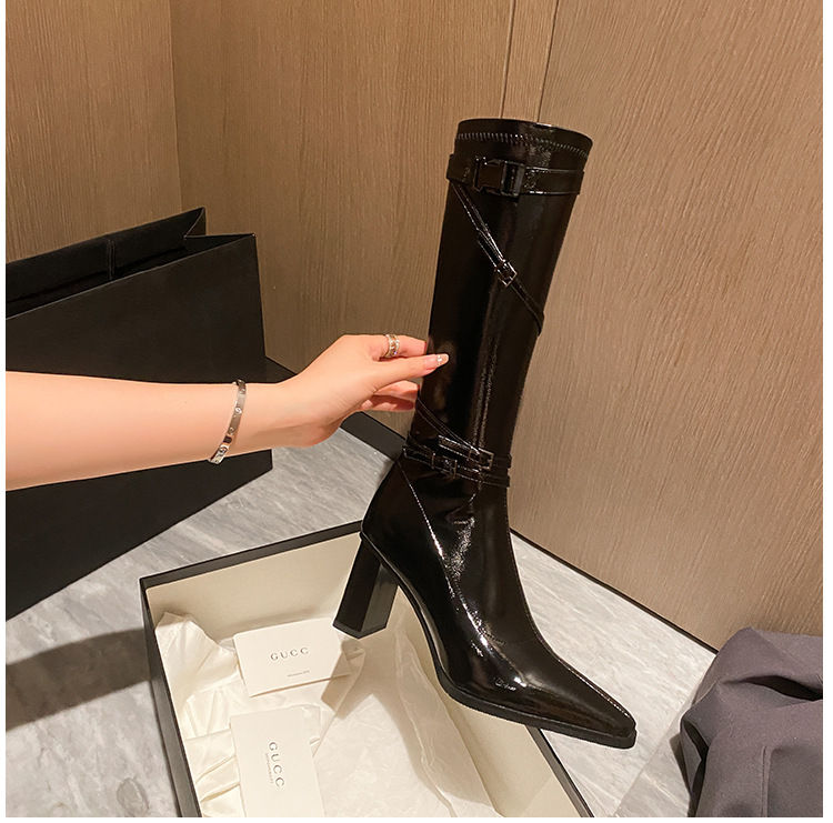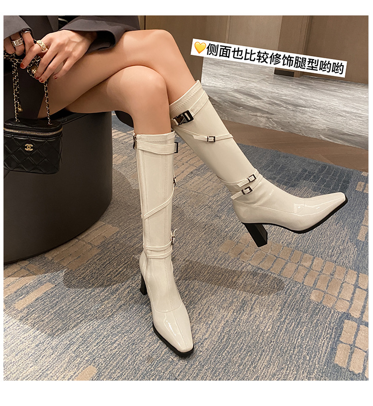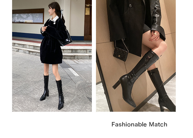Lingge Studio 하이힐 부츠 여성용 두꺼운 다리 슬리밍 빅 부츠 2023 가을과 겨울 스파이스 부츠