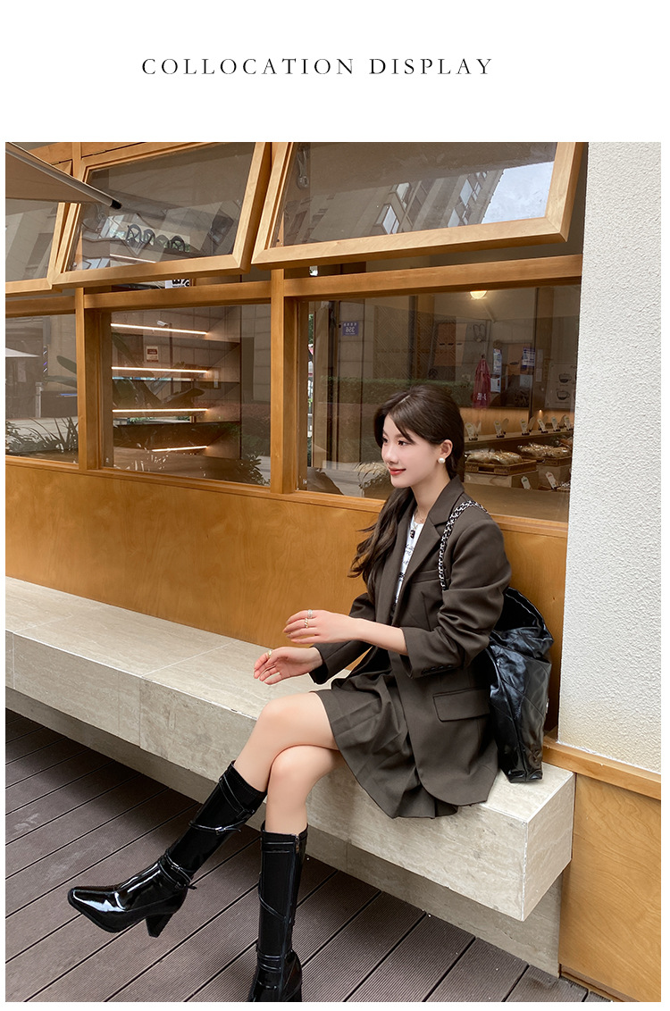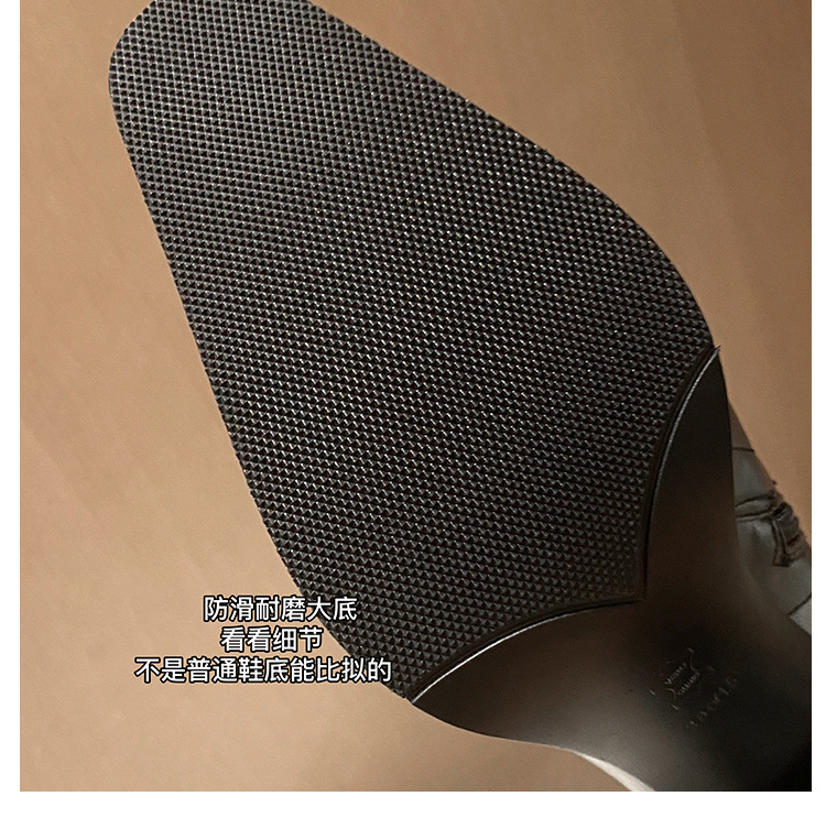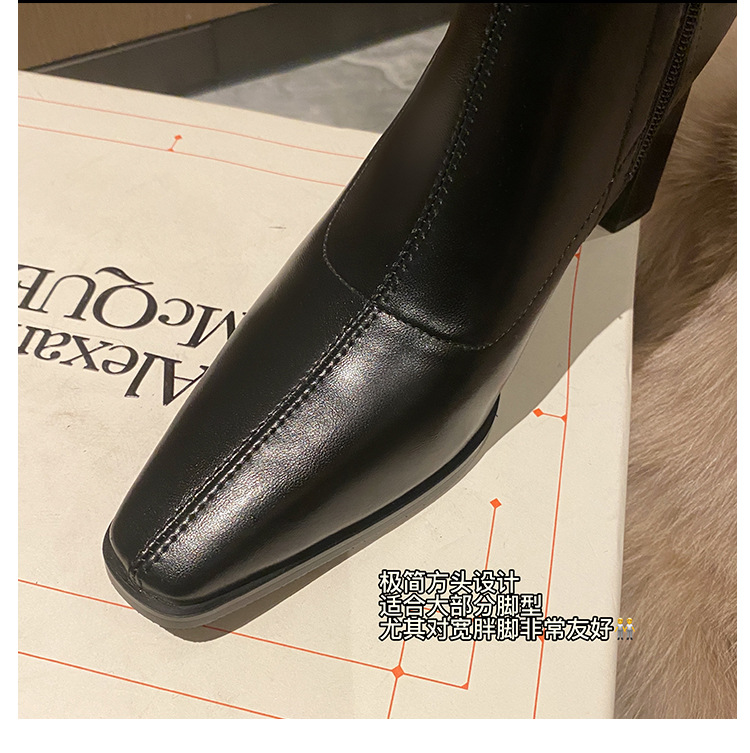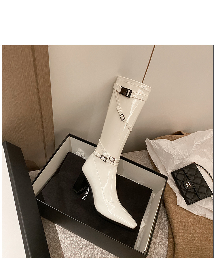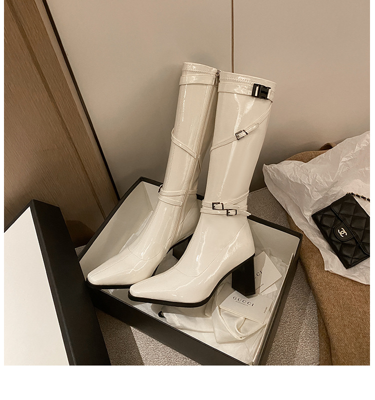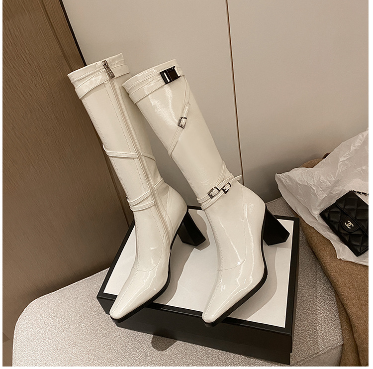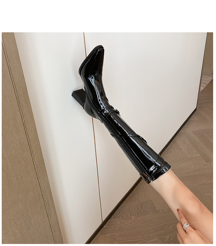Lingge Studio 하이힐 부츠 여성용 두꺼운 다리 슬리밍 빅 부츠 2023 가을과 겨울 스파이스 부츠