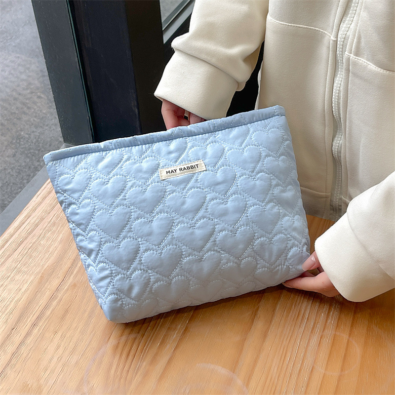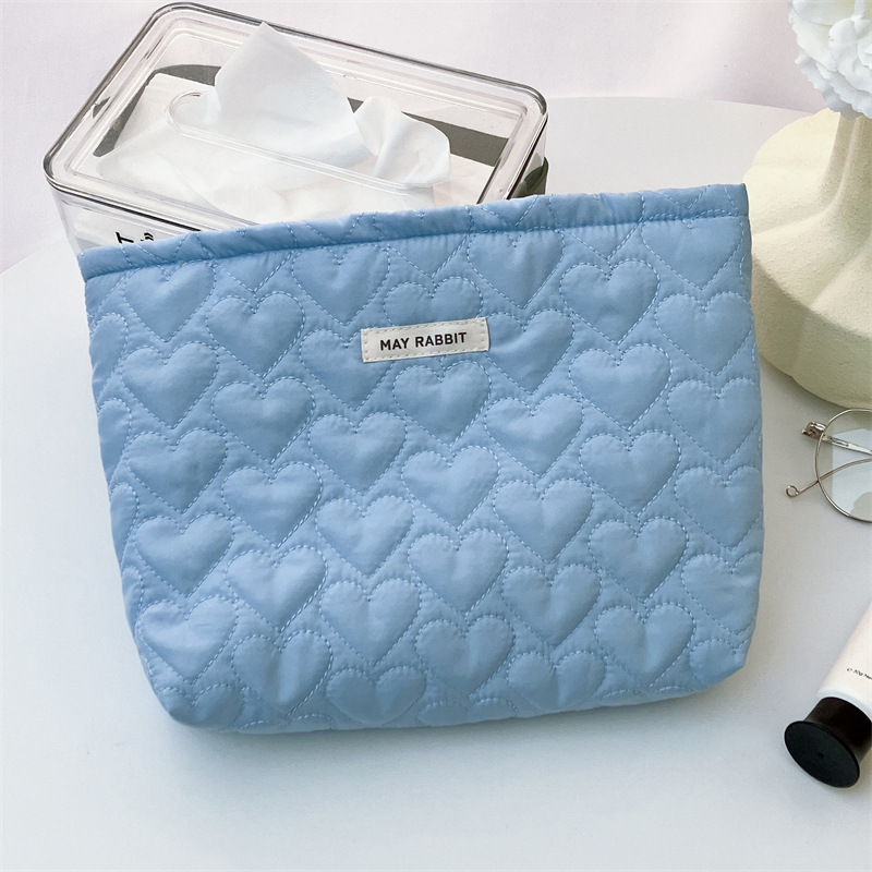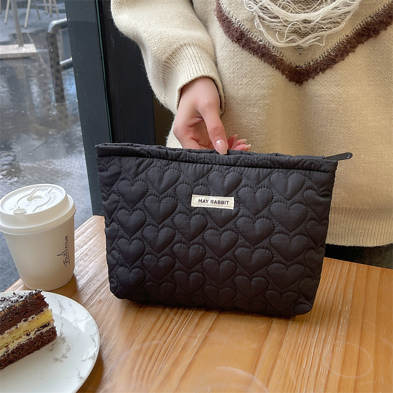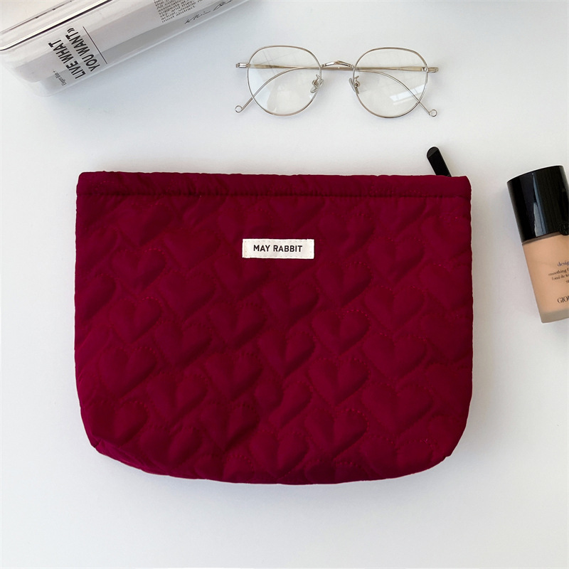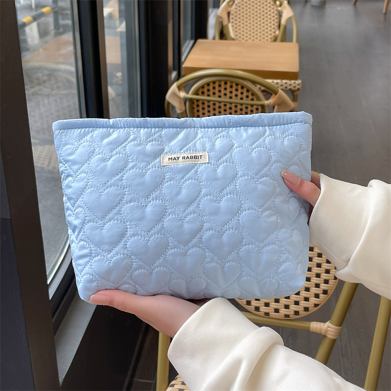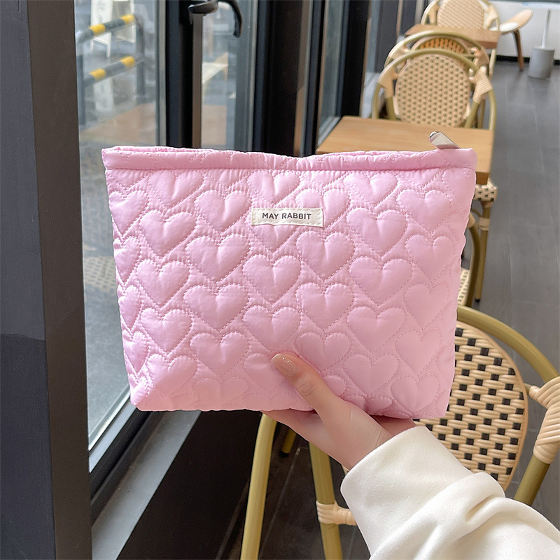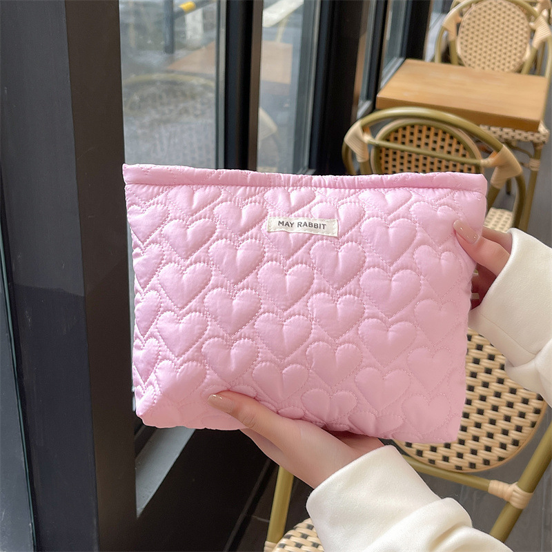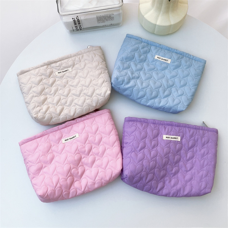새로운 퀼트 코튼 러브 화장품 가방 보관 가방 신선하고 귀여운 워시 백 라이너 백 휴대용 클러치 백 천 가방