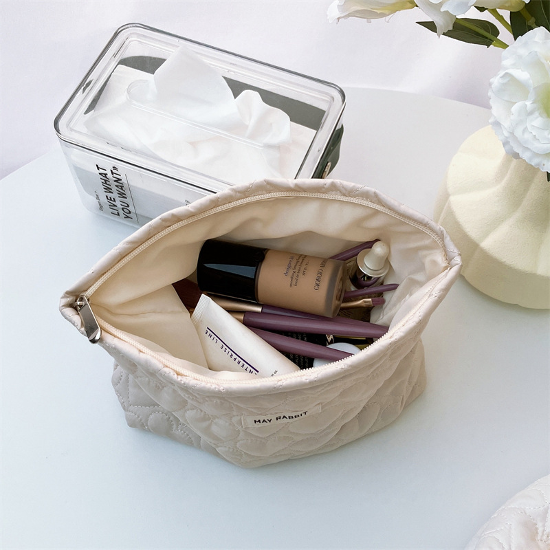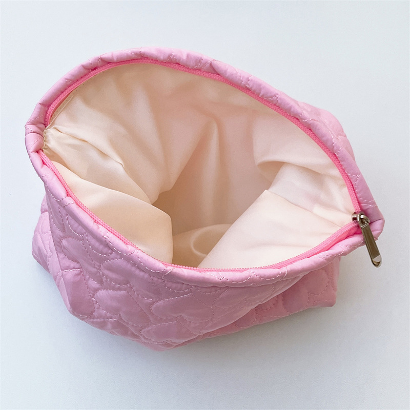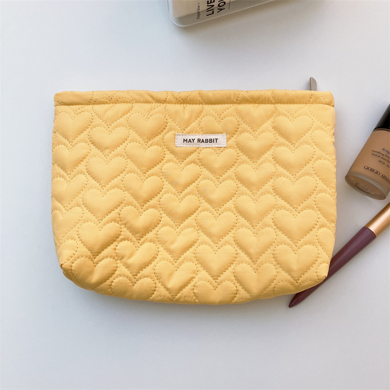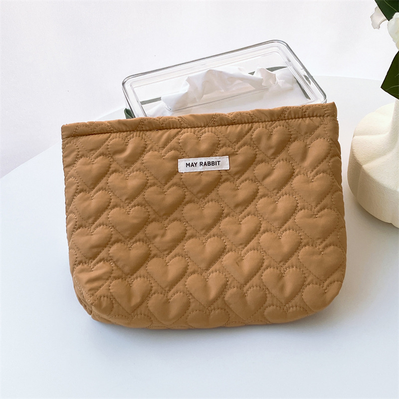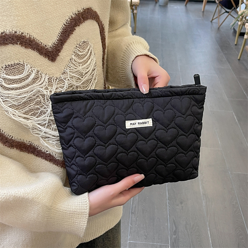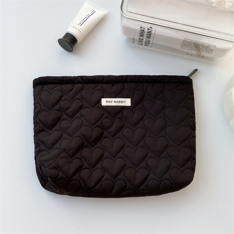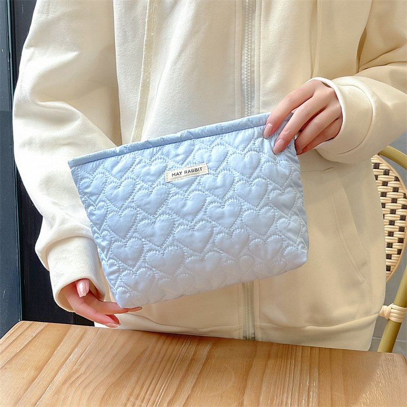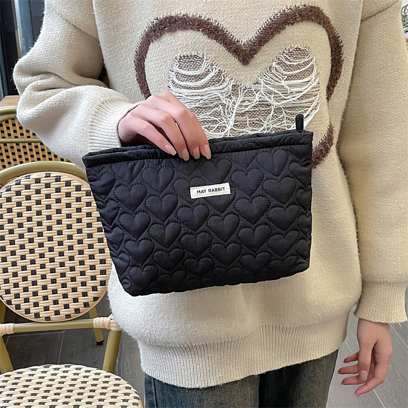 새로운 퀼트 코튼 러브 화장품 가방 보관 가방 신선하고 귀여운 워시 백 라이너 백 휴대용 클러치 백 천 가방