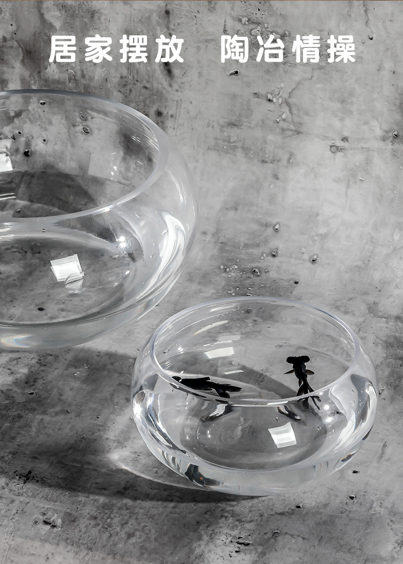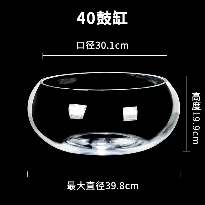 사무실 어항 유리 거북이 탱크 드럼 탱크 투명 수경 식물 구리 돈 잔디 녹색 무 거실 데스크탑 라운드스토어 가기