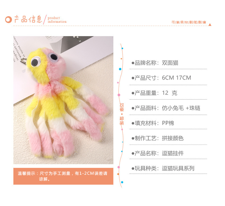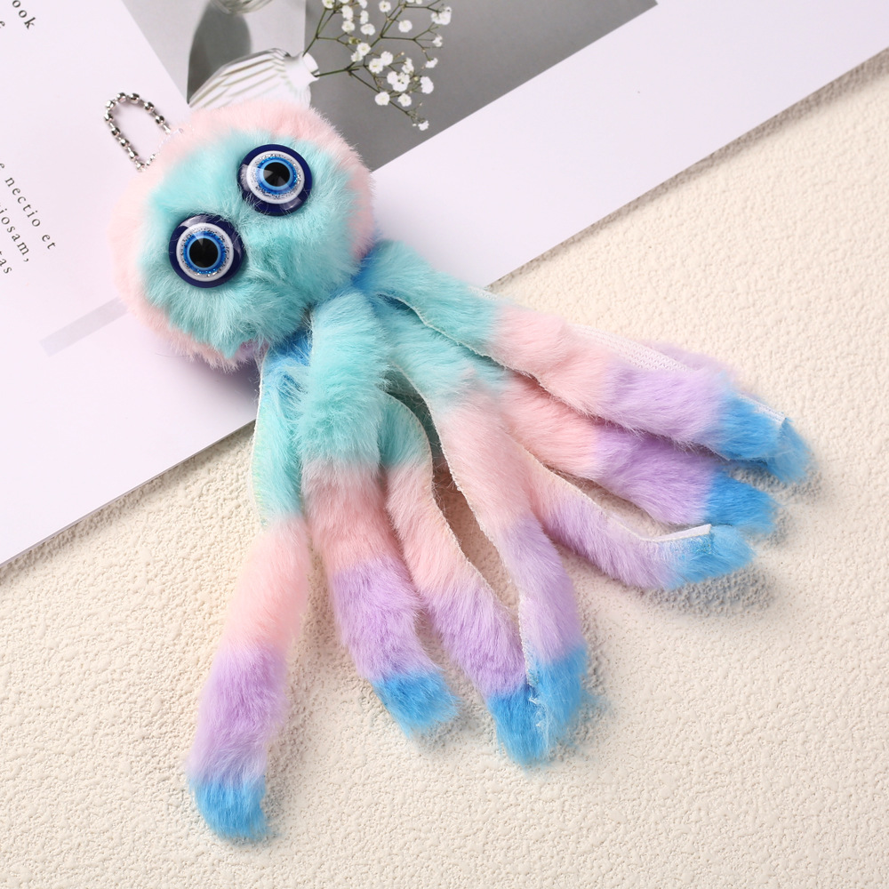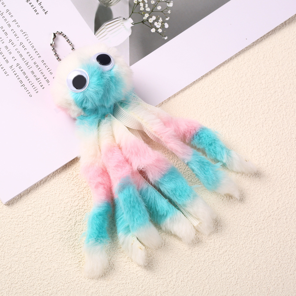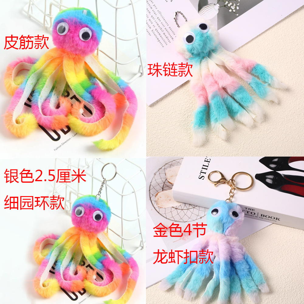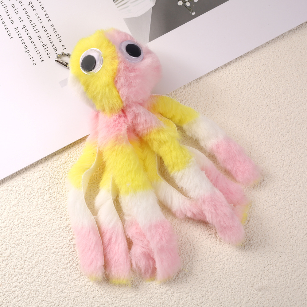 귀여운 문어 컬러 스트라이프 모피 볼 키 체인 문어 해양 동물 재미있는 고양이 스틱 고양이 용품 도매