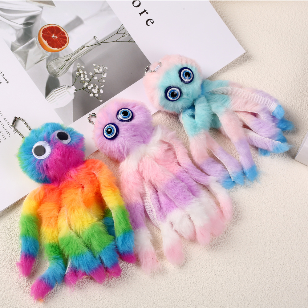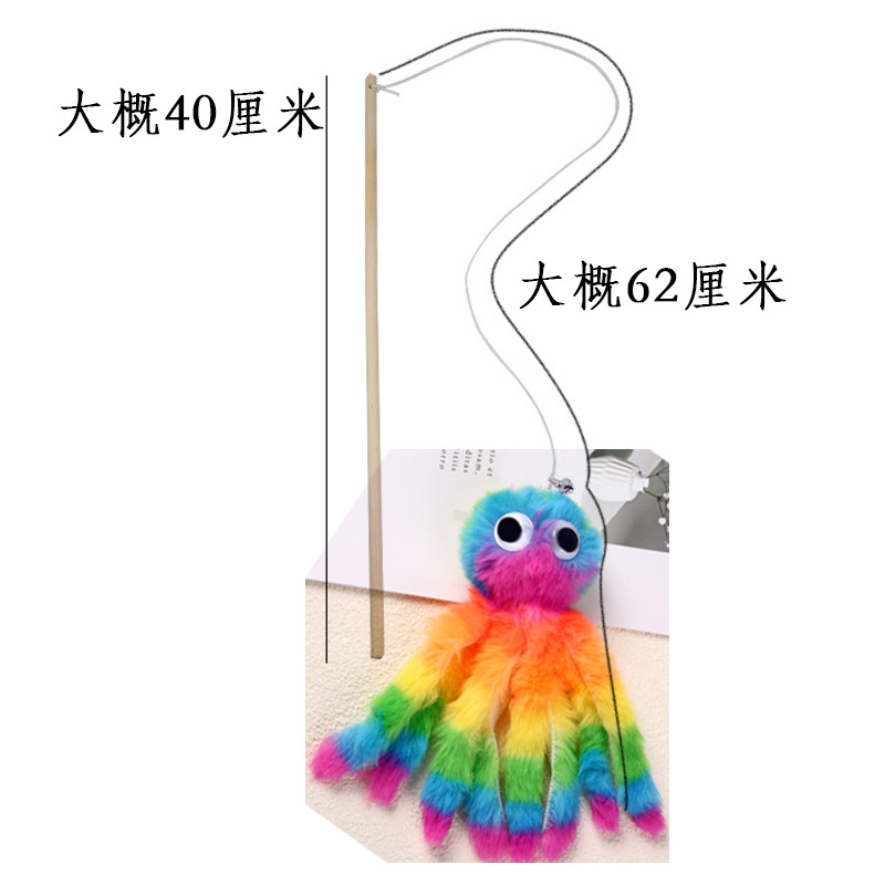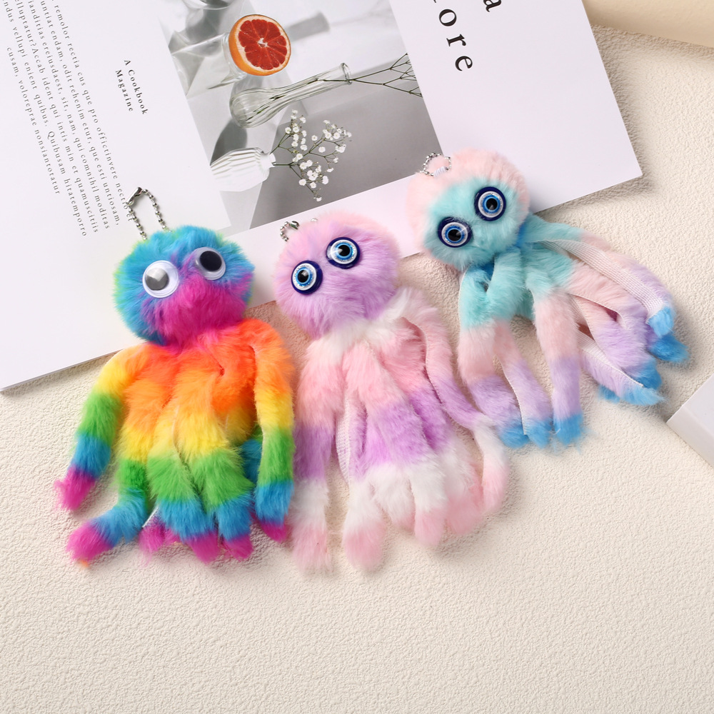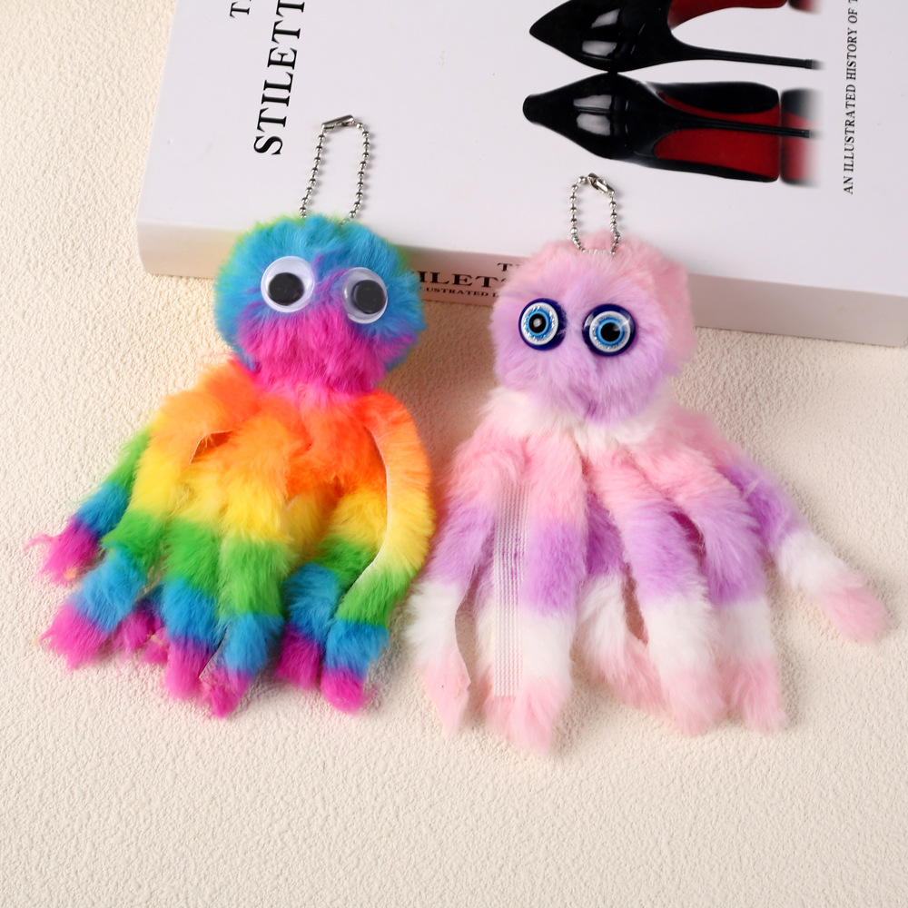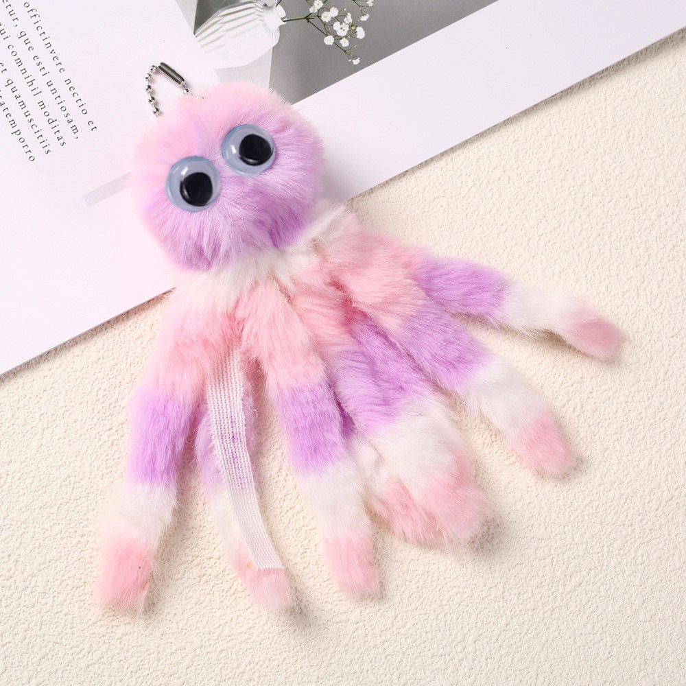 귀여운 문어 컬러 스트라이프 모피 볼 키 체인 문어 해양 동물 재미있는 고양이 스틱 고양이 용품 도매