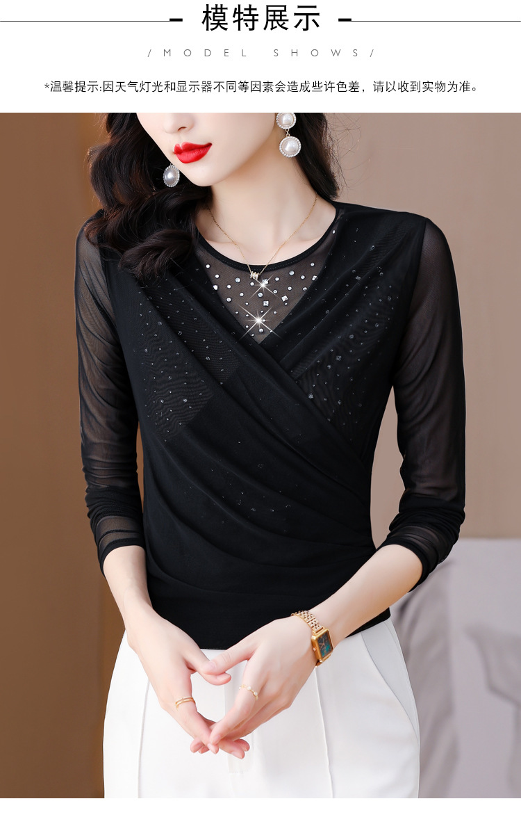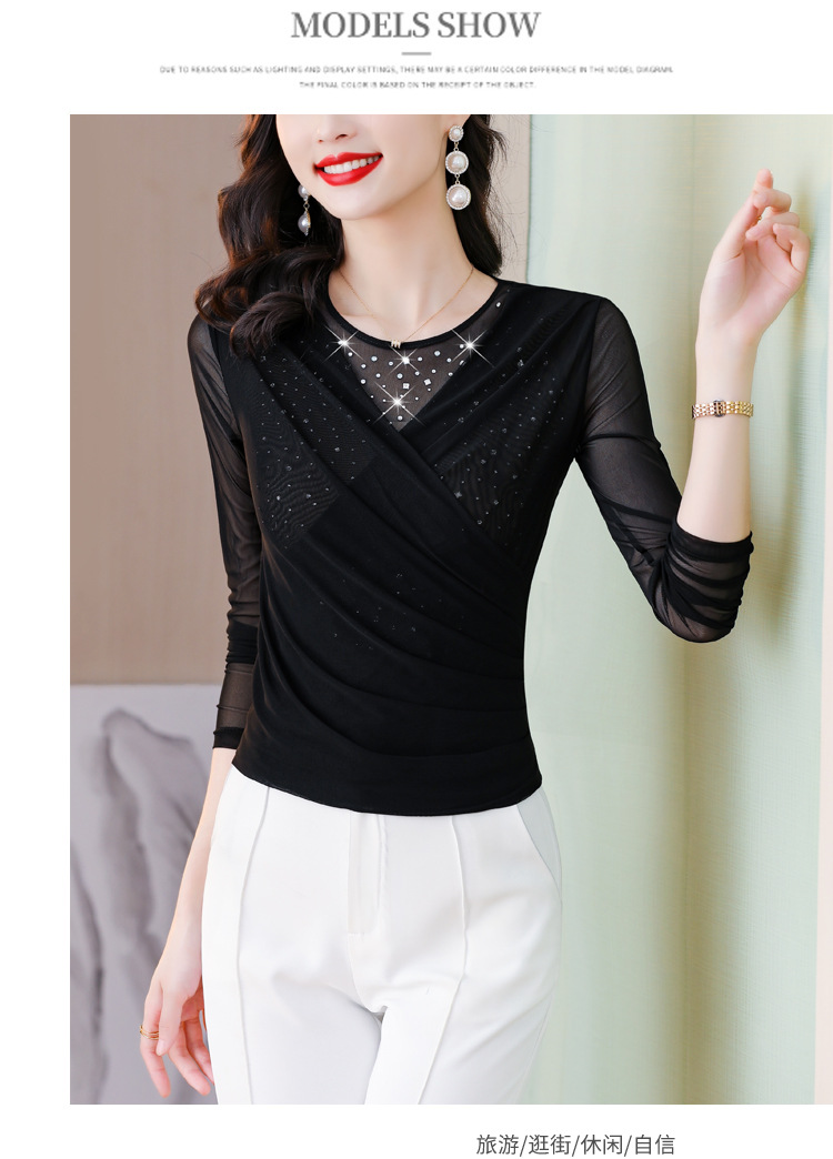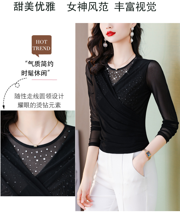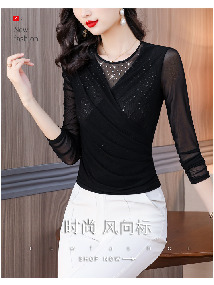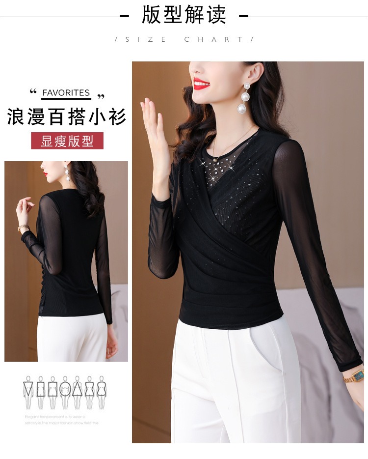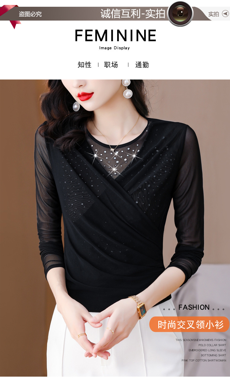패션 크로스 칼라 작은 셔츠 여성 2022 가을과 겨울 새로운 긴 소매 라운드 넥 기모 단색 슬림 어머니 베이스 셔츠스토어 가기