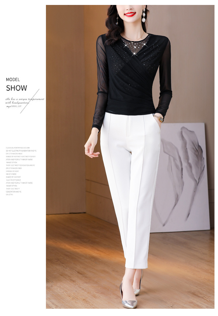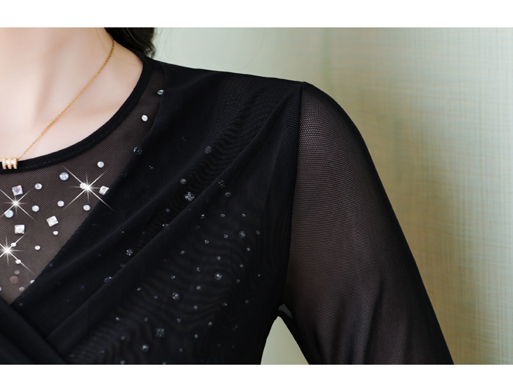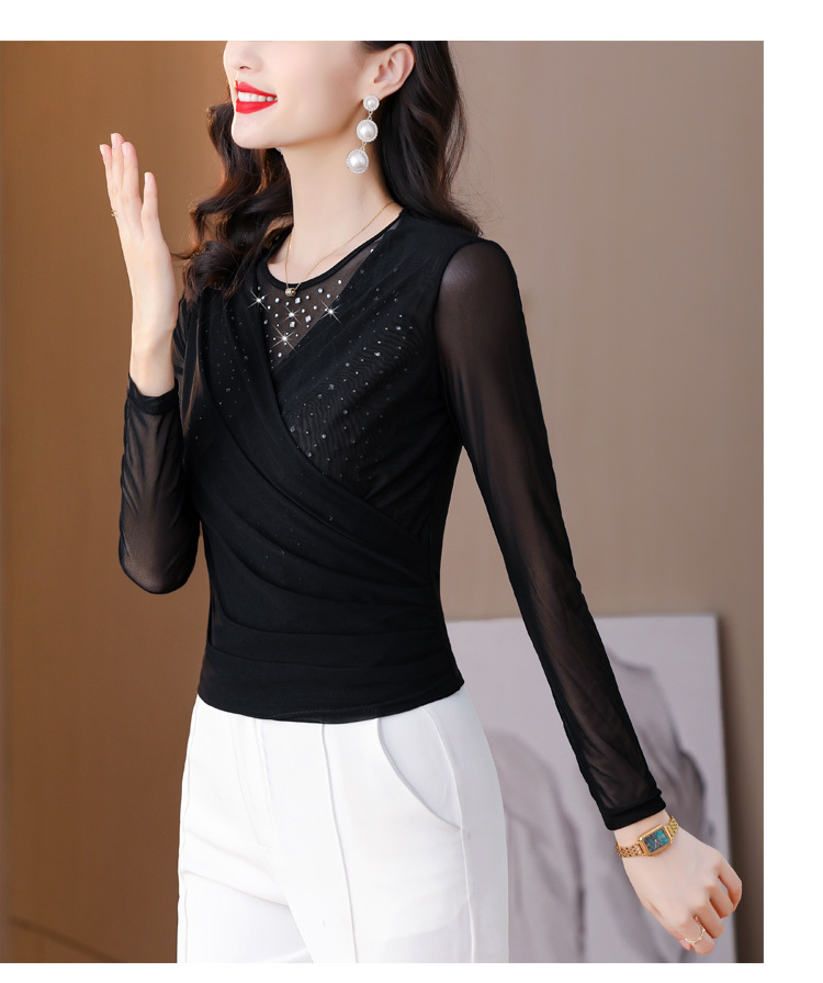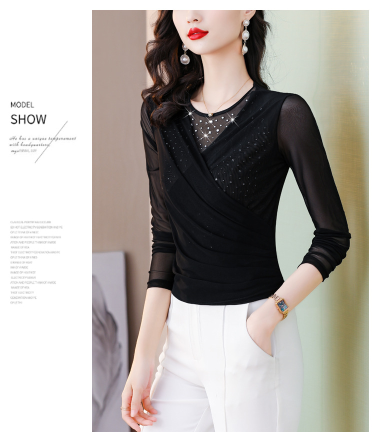패션 크로스 칼라 작은 셔츠 여성 2022 가을과 겨울 새로운 긴 소매 라운드 넥 기모 단색 슬림 어머니 베이스 셔츠