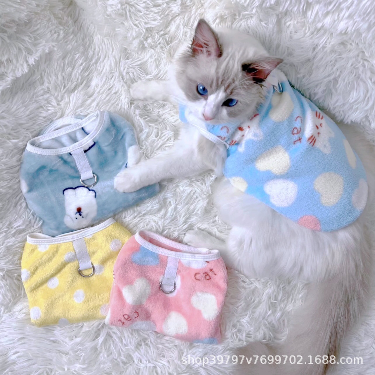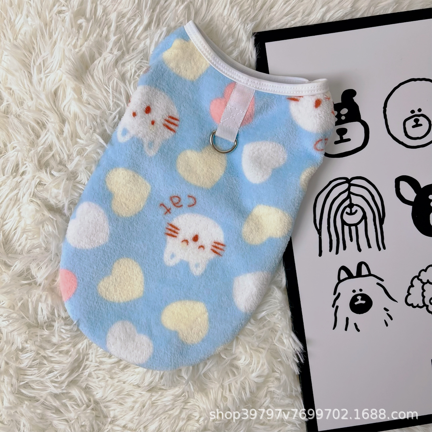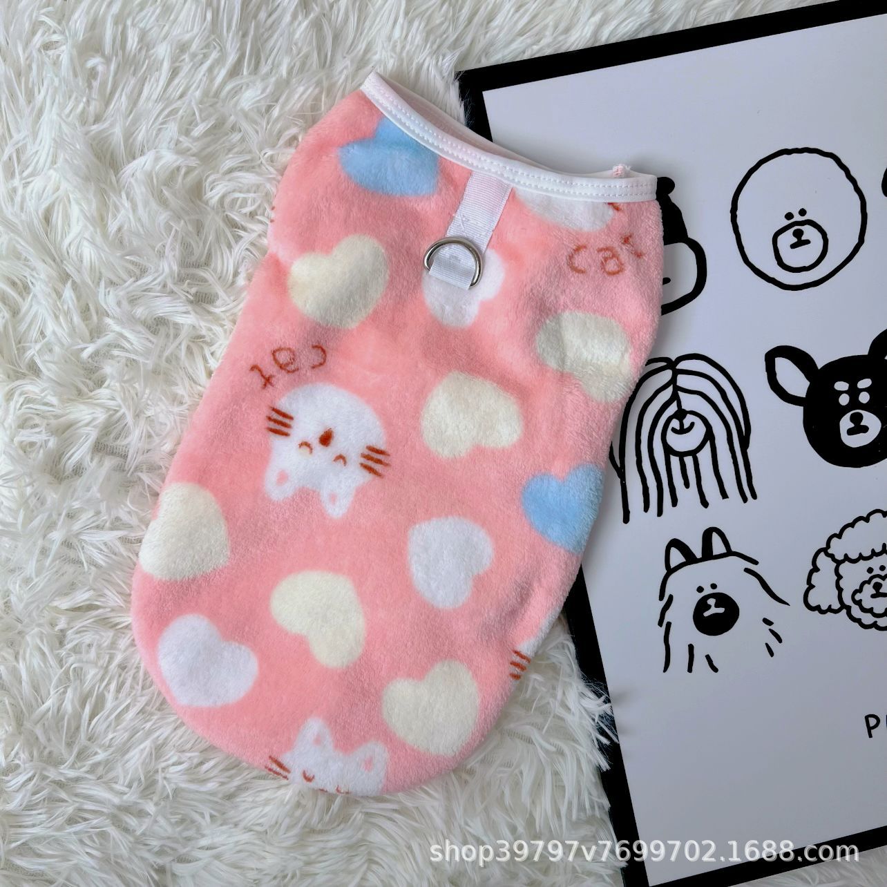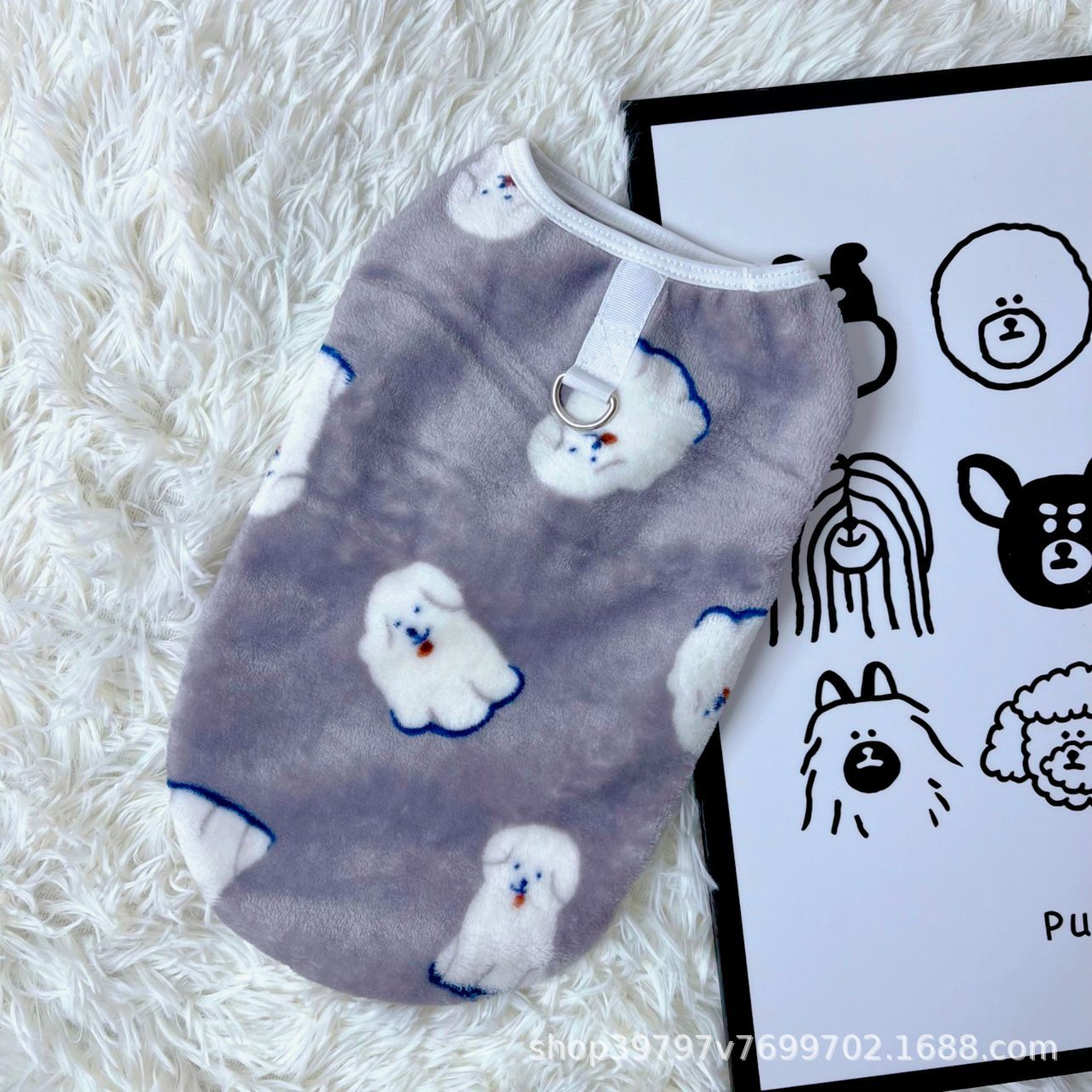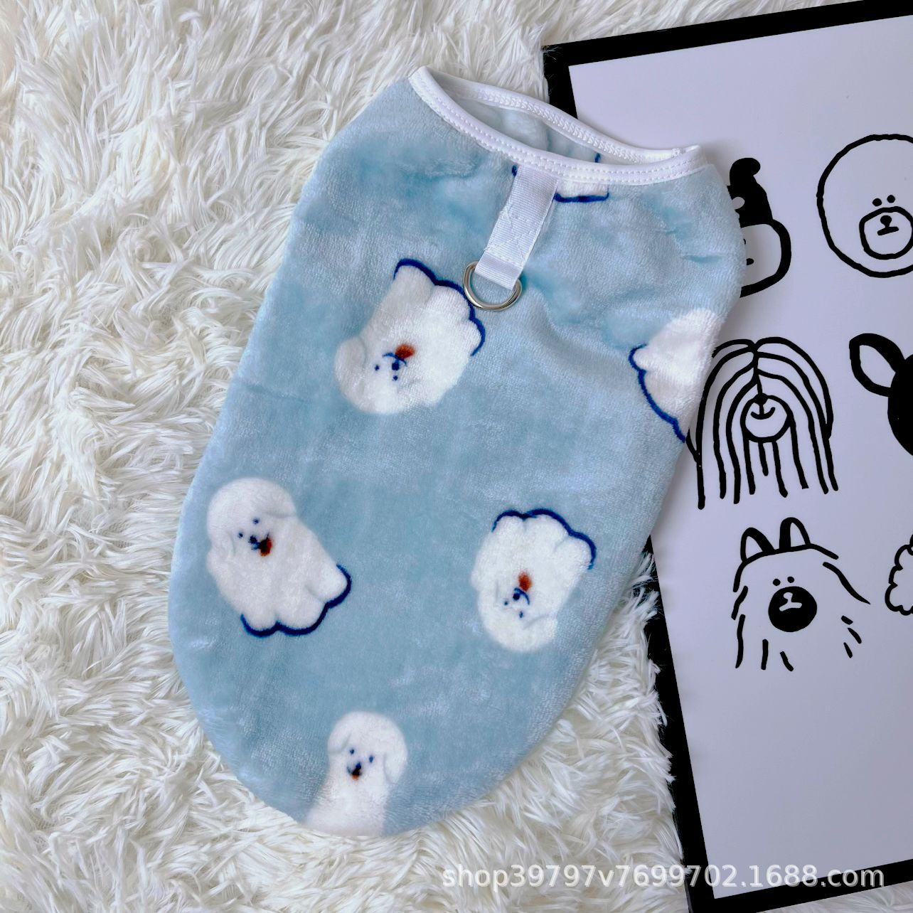 소스 공장 애완 동물 개 개 개 옷 고양이 인쇄 플란넬 조끼 작은 개 테디 Bomei 머리카락의 세대스토어 가기