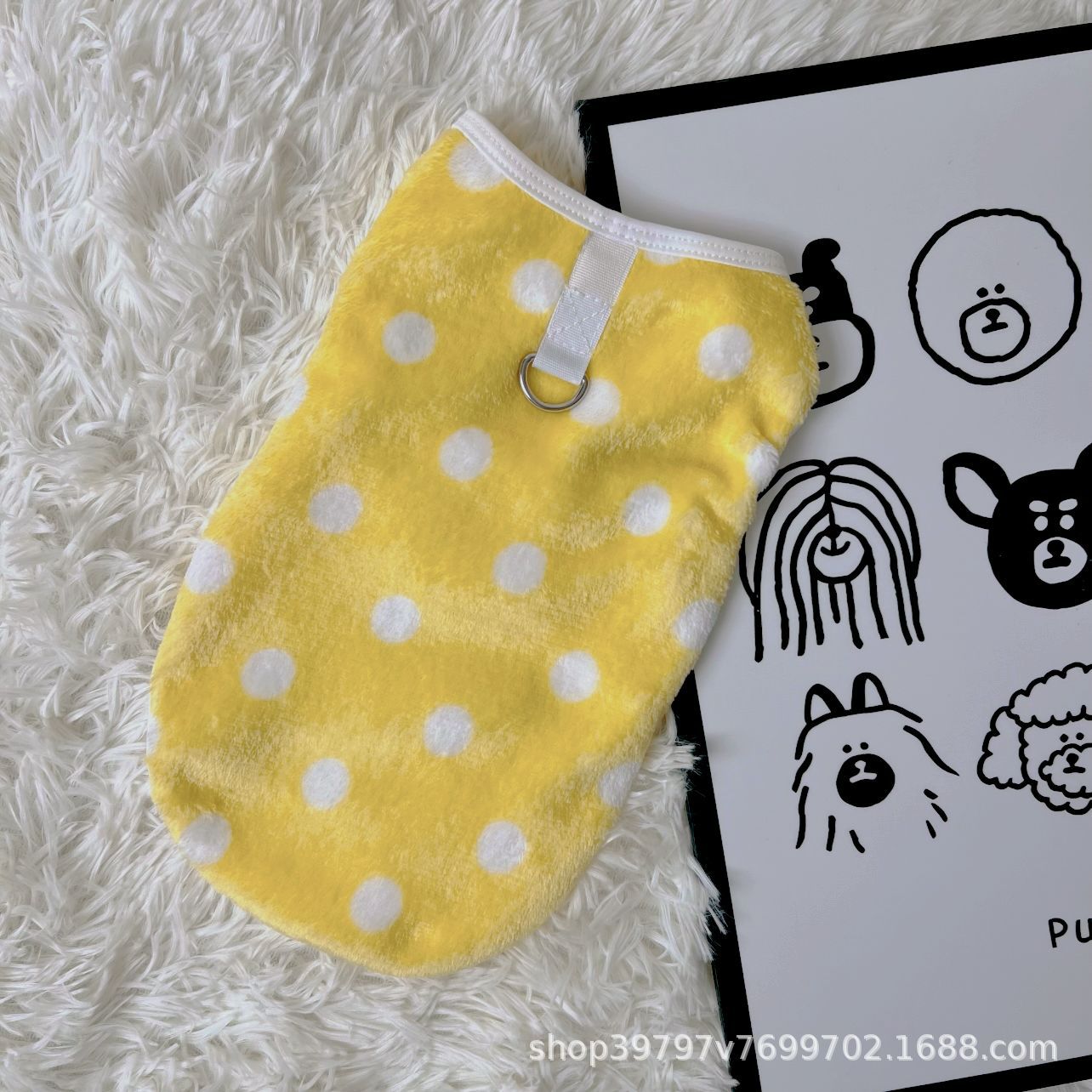 • 견인 버클이있는 플란넬 조끼 노란색과 흰색 점